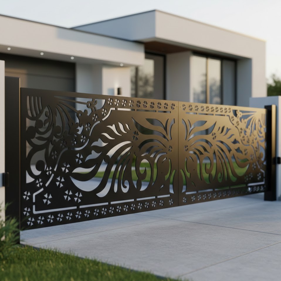 Nasze panele ażurowe to nowoczesne i trwałe wypełnienie, które przekształca standardową bramę w unikalny element architektoniczny. Niezależnie od tego, czy planujesz stworzyć bramę przesuwną, dwuskrzydłową, łamaną czy furtkę, nasze precyzyjnie wycinane laserowo panele stanowią idealne połączenie funkcjonalności, bezpieczeństwa, prywatności i unikalnego designu.