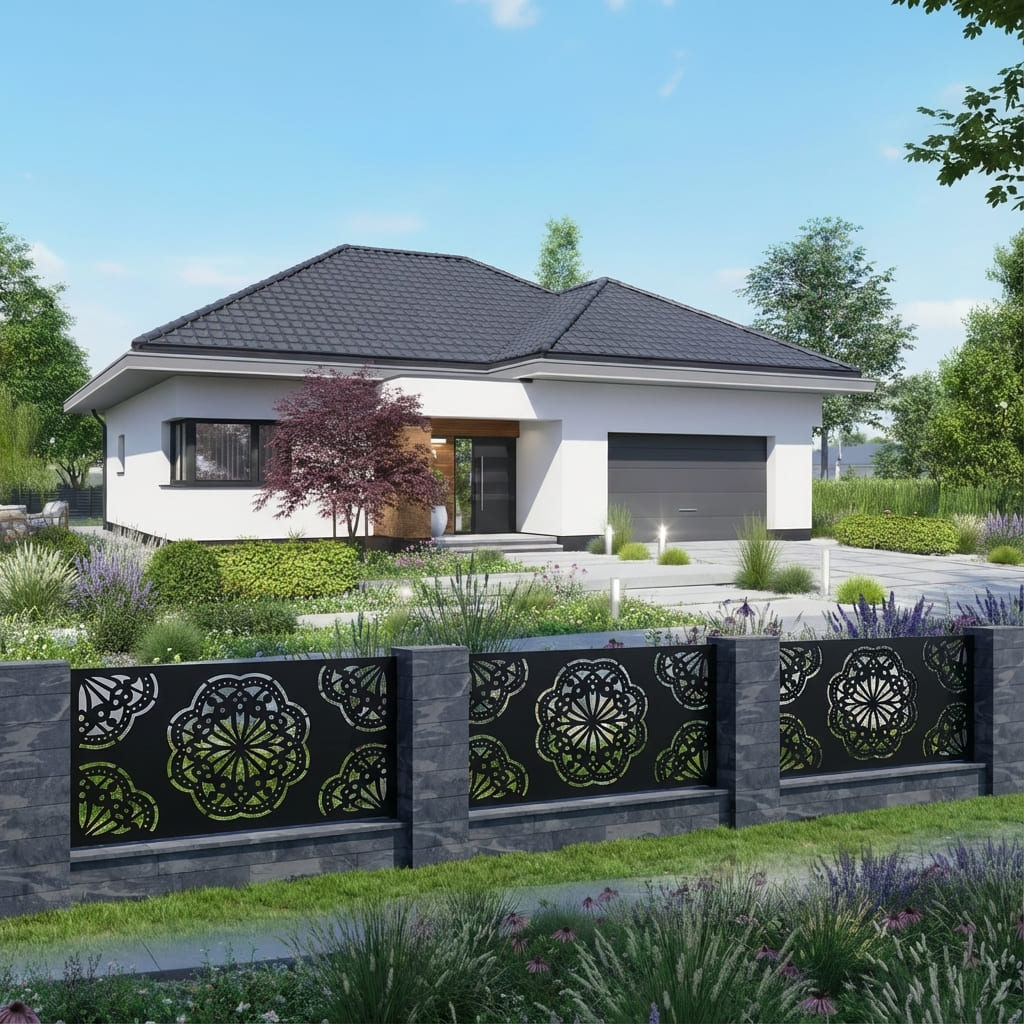 Nasze panele ogrodzeniowe o motywie geometrycznym łączą nowoczesny styl z solidną konstrukcją. Geometryczne wzory nadają otoczeniu elegancki i harmonijny charakter, przyciągają wzrok oraz wprowadzają wrażenie wizualnej lekkości. Panele doskonale sprawdzą się jako przęsła ogrodzeniowe, wypełnienia bram, balustrad oraz dekoracyjne ścianki działowe – łącząc estetykę z funkcjonalnością, zapewniając prywatność i trwałość na lata.