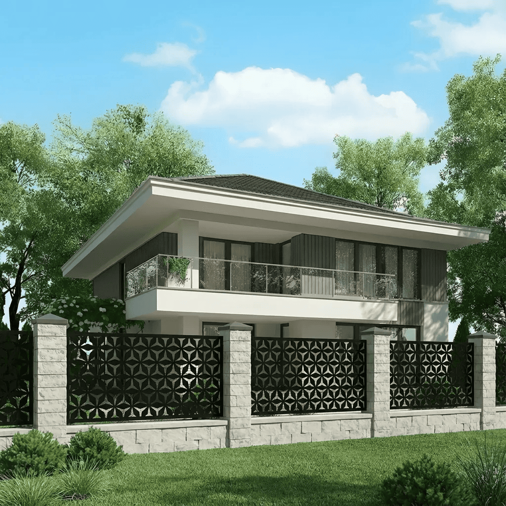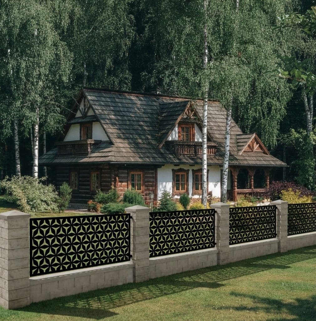 Nasze panele ogrodzeniowe o motywie geometrycznym łączą nowoczesny styl z solidną konstrukcją. Geometryczne wzory nadają otoczeniu elegancki i harmonijny charakter, przyciągają wzrok oraz wprowadzają wrażenie wizualnej lekkości. Panele doskonale sprawdzą się jako przęsła ogrodzeniowe, wypełnienia bram, balustrad oraz dekoracyjne ścianki działowe – łącząc estetykę z funkcjonalnością, zapewniając prywatność i trwałość na lata.