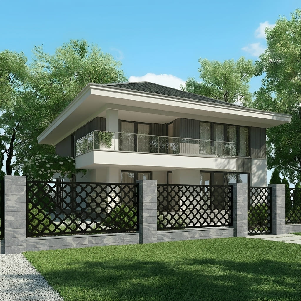 Nasze panele ogrodzeniowe o motywie geometrycznym łączą nowoczesny styl z solidną konstrukcją. Geometryczne wzory nadają otoczeniu elegancki i harmonijny charakter, przyciągają wzrok oraz wprowadzają wrażenie wizualnej lekkości. Panele doskonale sprawdzą się jako przęsła ogrodzeniowe, wypełnienia bram, balustrad oraz dekoracyjne ścianki działowe – łącząc estetykę z funkcjonalnością, zapewniając prywatność i trwałość na lata.