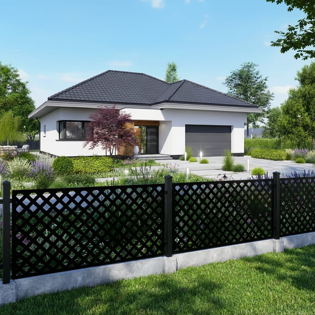 Nasze panele ogrodzeniowe o motywie geometrycznym łączą nowoczesny styl z solidną konstrukcją. Geometryczne wzory nadają otoczeniu elegancki i harmonijny charakter, przyciągają wzrok oraz wprowadzają wrażenie wizualnej lekkości. Panele doskonale sprawdzą się jako przęsła ogrodzeniowe, wypełnienia bram, balustrad oraz dekoracyjne ścianki działowe – łącząc estetykę z funkcjonalnością, zapewniając prywatność i trwałość na lata.