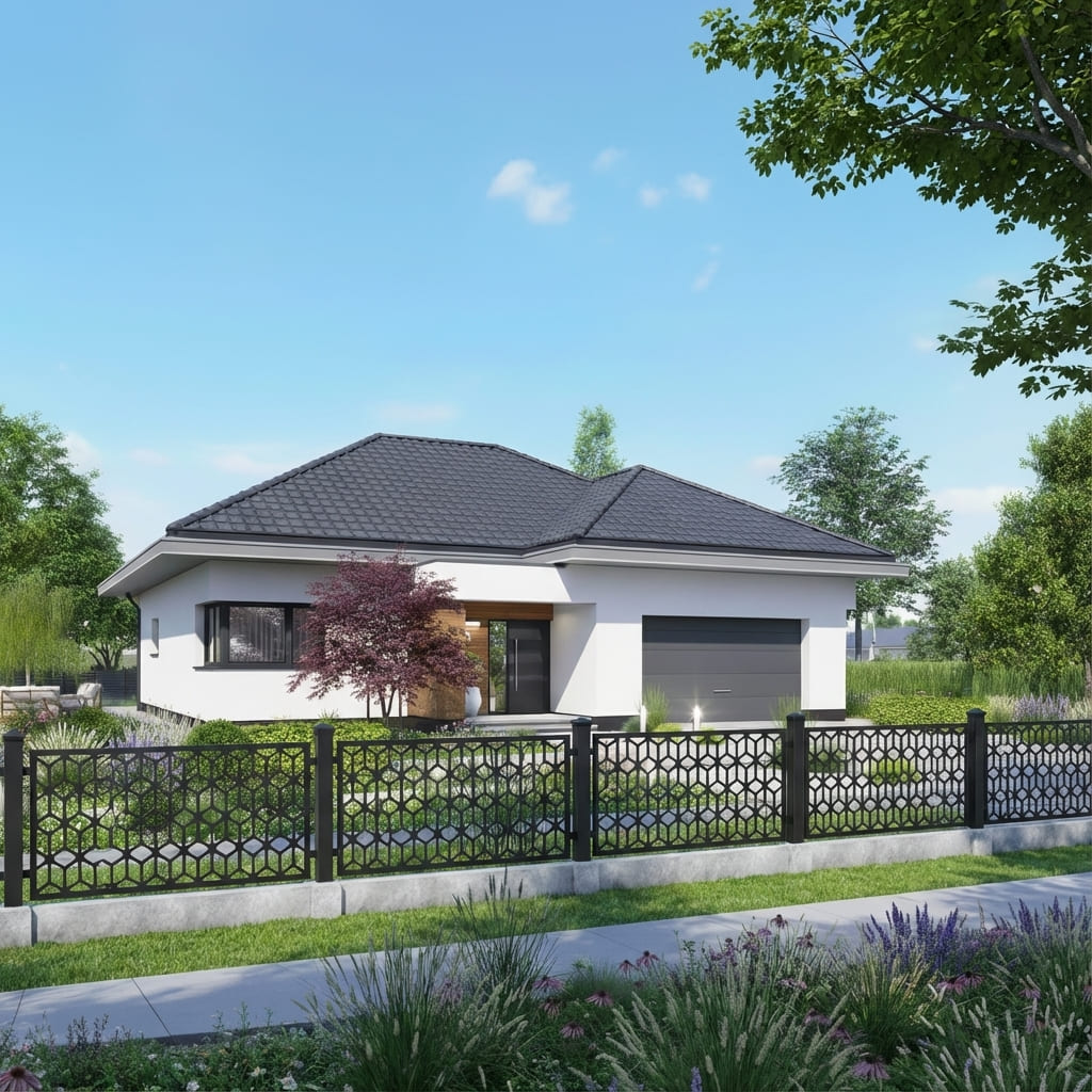 Nasze panele ogrodzeniowe o motywie geometrycznym łączą nowoczesny styl z solidną konstrukcją. Geometryczne wzory nadają otoczeniu elegancki i harmonijny charakter, przyciągają wzrok oraz wprowadzają wrażenie wizualnej lekkości. Panele doskonale sprawdzą się jako przęsła ogrodzeniowe, wypełnienia bram, balustrad oraz dekoracyjne ścianki działowe – łącząc estetykę z funkcjonalnością, zapewniając prywatność i trwałość na lata.