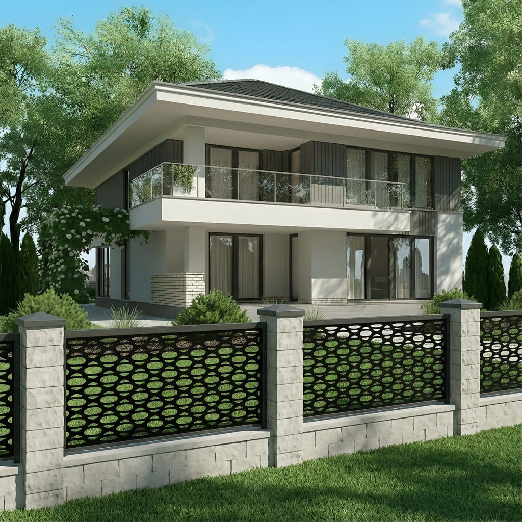 Nasze panele ogrodzeniowe o motywie geometrycznym łączą nowoczesny styl z solidną konstrukcją. Geometryczne wzory nadają otoczeniu elegancki i harmonijny charakter, przyciągają wzrok oraz wprowadzają wrażenie wizualnej lekkości. Panele doskonale sprawdzą się jako przęsła ogrodzeniowe, wypełnienia bram, balustrad oraz dekoracyjne ścianki działowe – łącząc estetykę z funkcjonalnością, zapewniając prywatność i trwałość na lata.