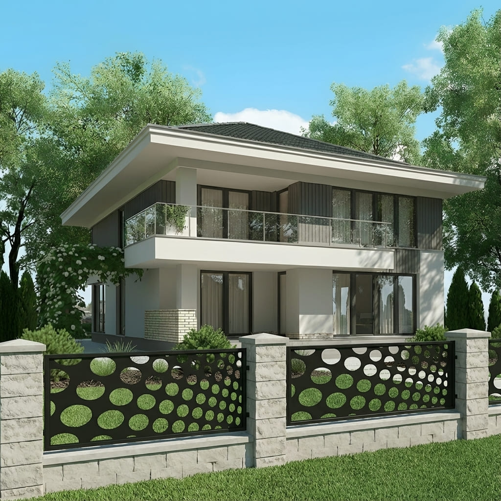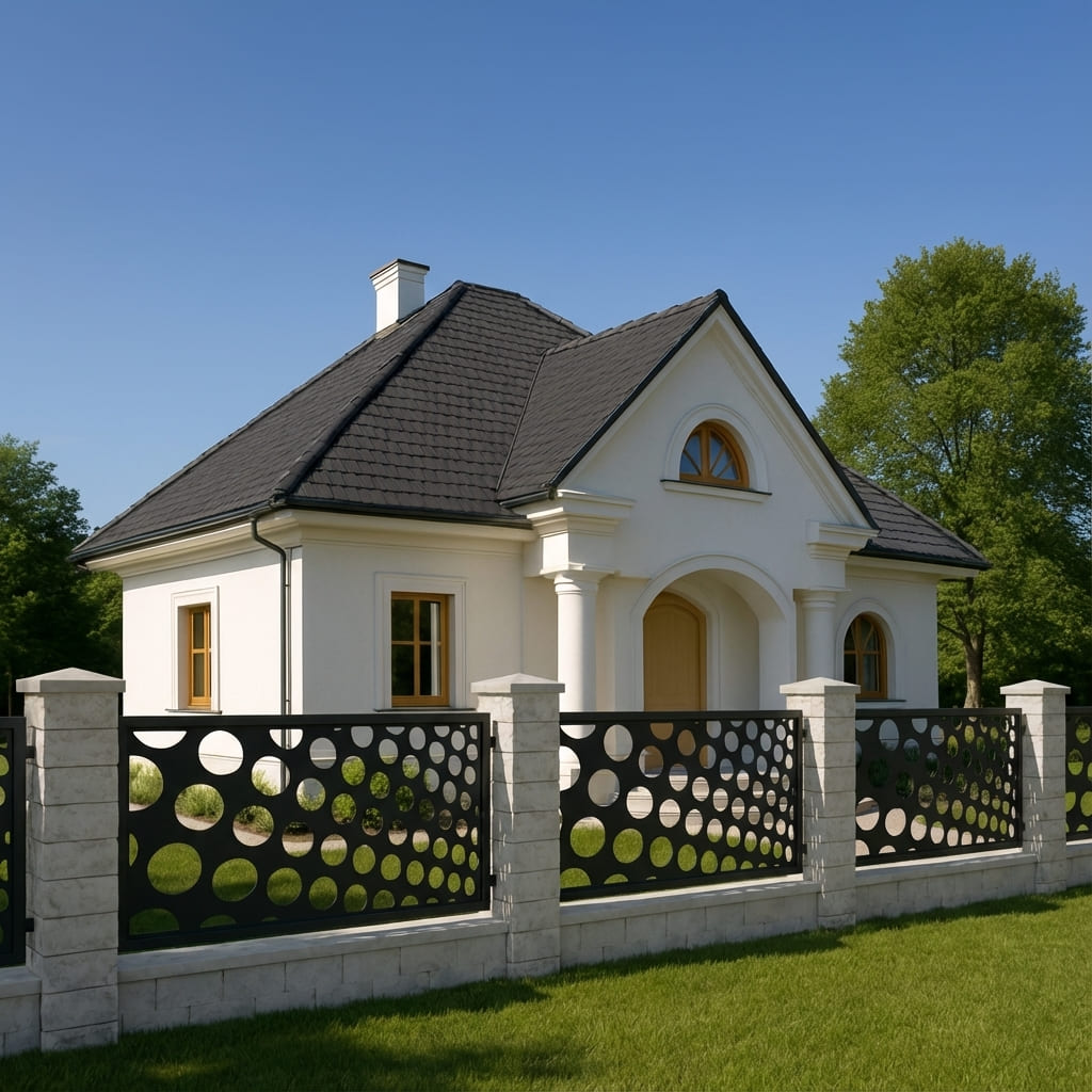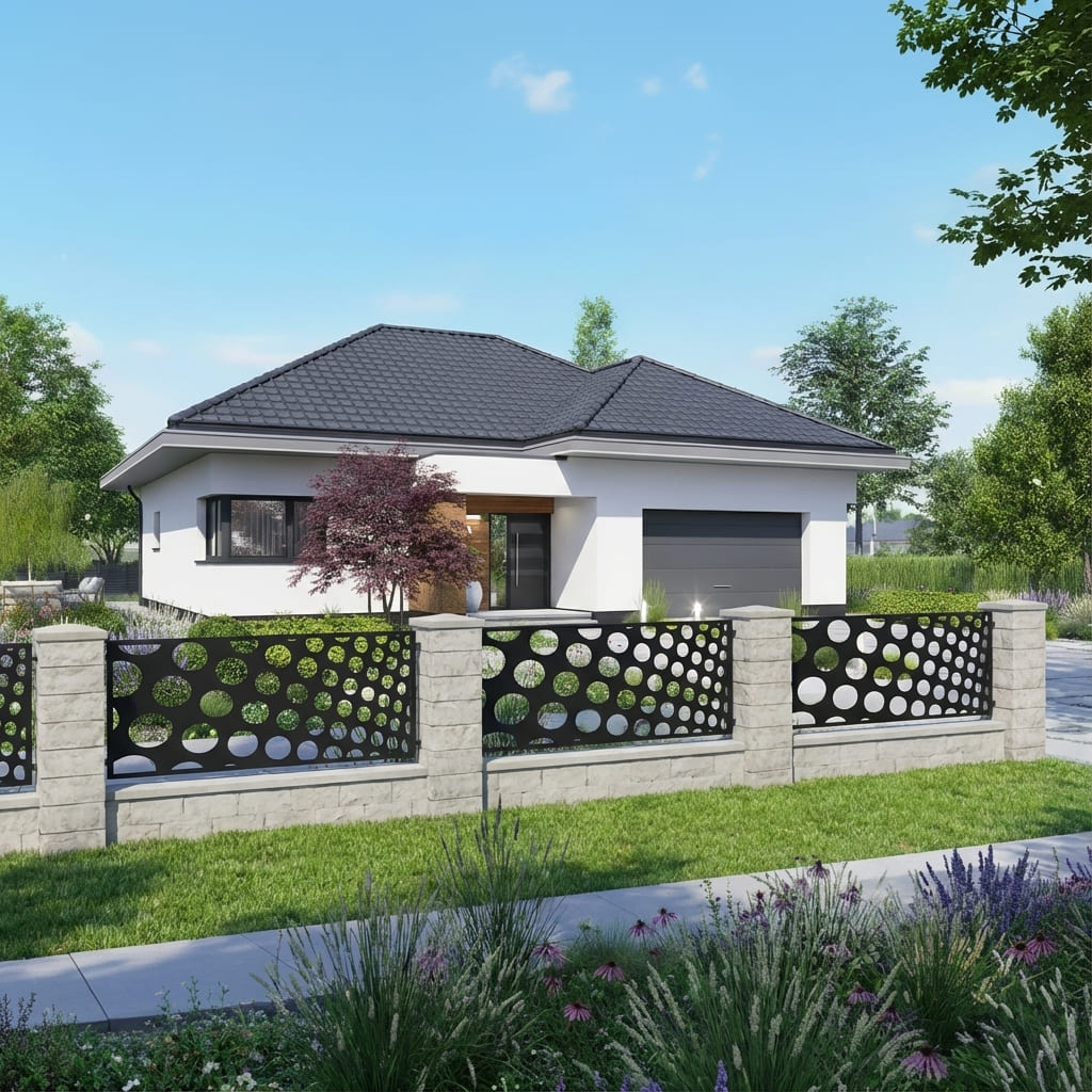 Nasze panele ogrodzeniowe o motywie geometrycznym łączą nowoczesny styl z solidną konstrukcją. Geometryczne wzory nadają otoczeniu elegancki i harmonijny charakter, przyciągają wzrok oraz wprowadzają wrażenie wizualnej lekkości. Panele doskonale sprawdzą się jako przęsła ogrodzeniowe, wypełnienia bram, balustrad oraz dekoracyjne ścianki działowe – łącząc estetykę z funkcjonalnością, zapewniając prywatność i trwałość na lata.