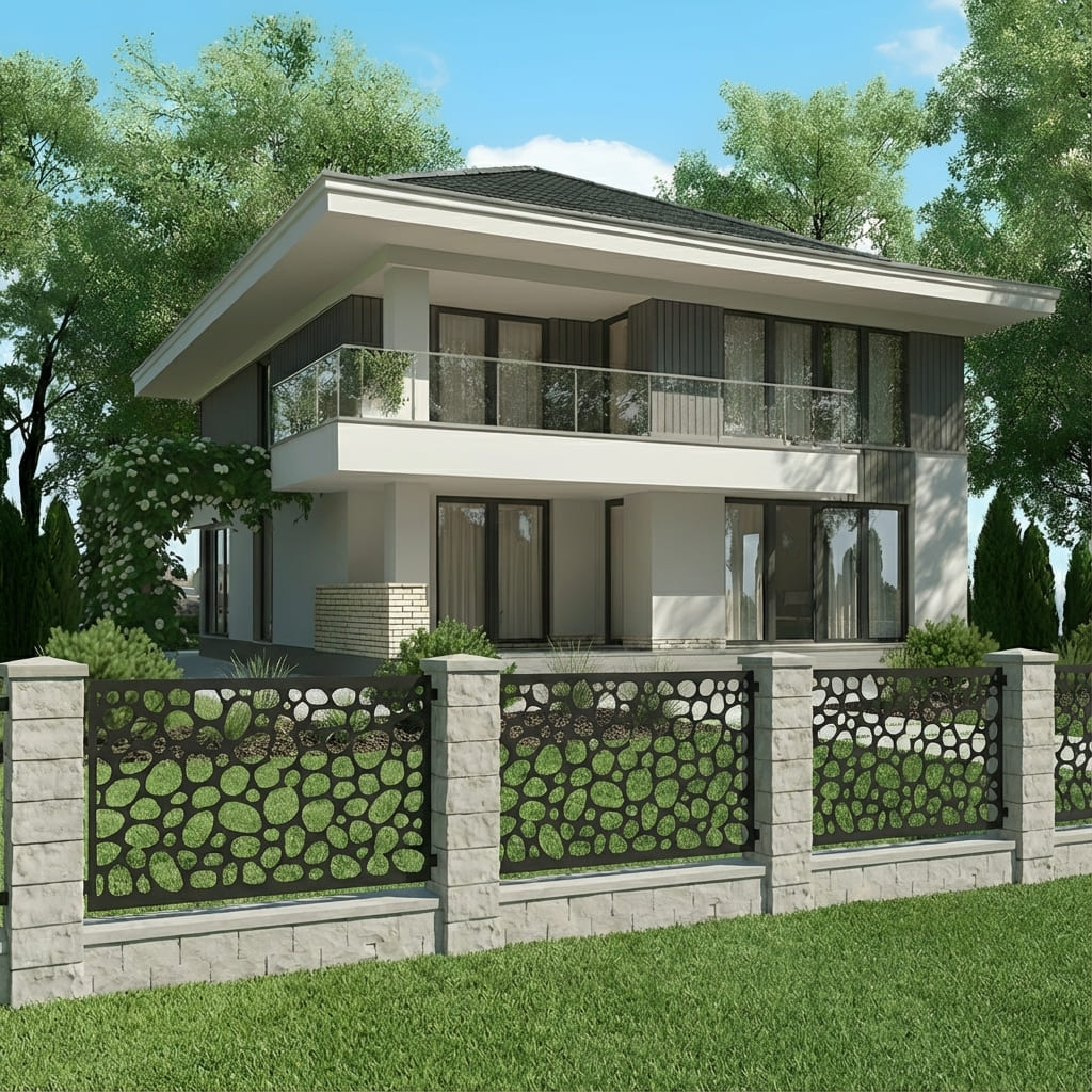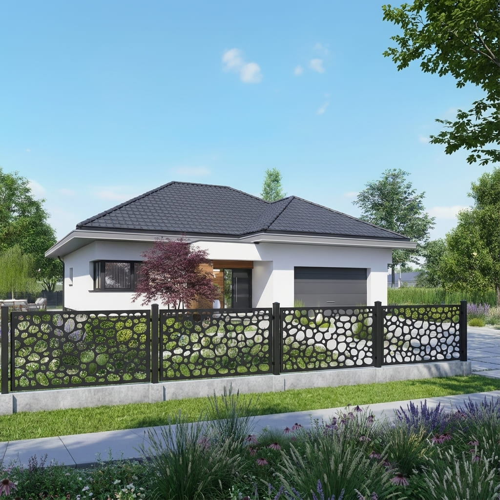 Nasze panele ogrodzeniowe o motywie geometrycznym łączą nowoczesny styl z solidną konstrukcją. Geometryczne wzory nadają otoczeniu elegancki i harmonijny charakter, przyciągają wzrok oraz wprowadzają wrażenie wizualnej lekkości. Panele doskonale sprawdzą się jako przęsła ogrodzeniowe, wypełnienia bram, balustrad oraz dekoracyjne ścianki działowe – łącząc estetykę z funkcjonalnością, zapewniając prywatność i trwałość na lata.