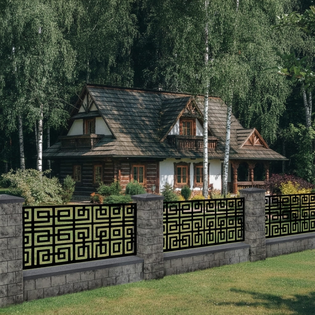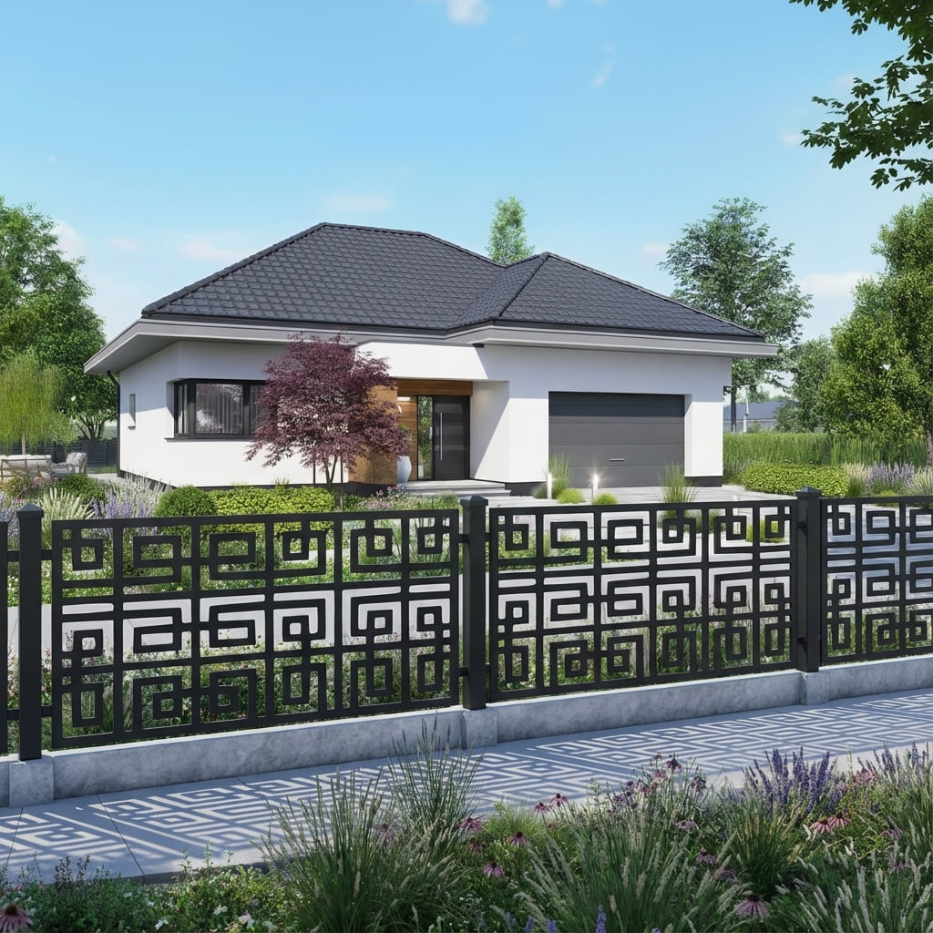 Nasze panele ogrodzeniowe o motywie geometrycznym łączą nowoczesny styl z solidną konstrukcją. Geometryczne wzory nadają otoczeniu elegancki i harmonijny charakter, przyciągają wzrok oraz wprowadzają wrażenie wizualnej lekkości. Panele doskonale sprawdzą się jako przęsła ogrodzeniowe, wypełnienia bram, balustrad oraz dekoracyjne ścianki działowe – łącząc estetykę z funkcjonalnością, zapewniając prywatność i trwałość na lata.