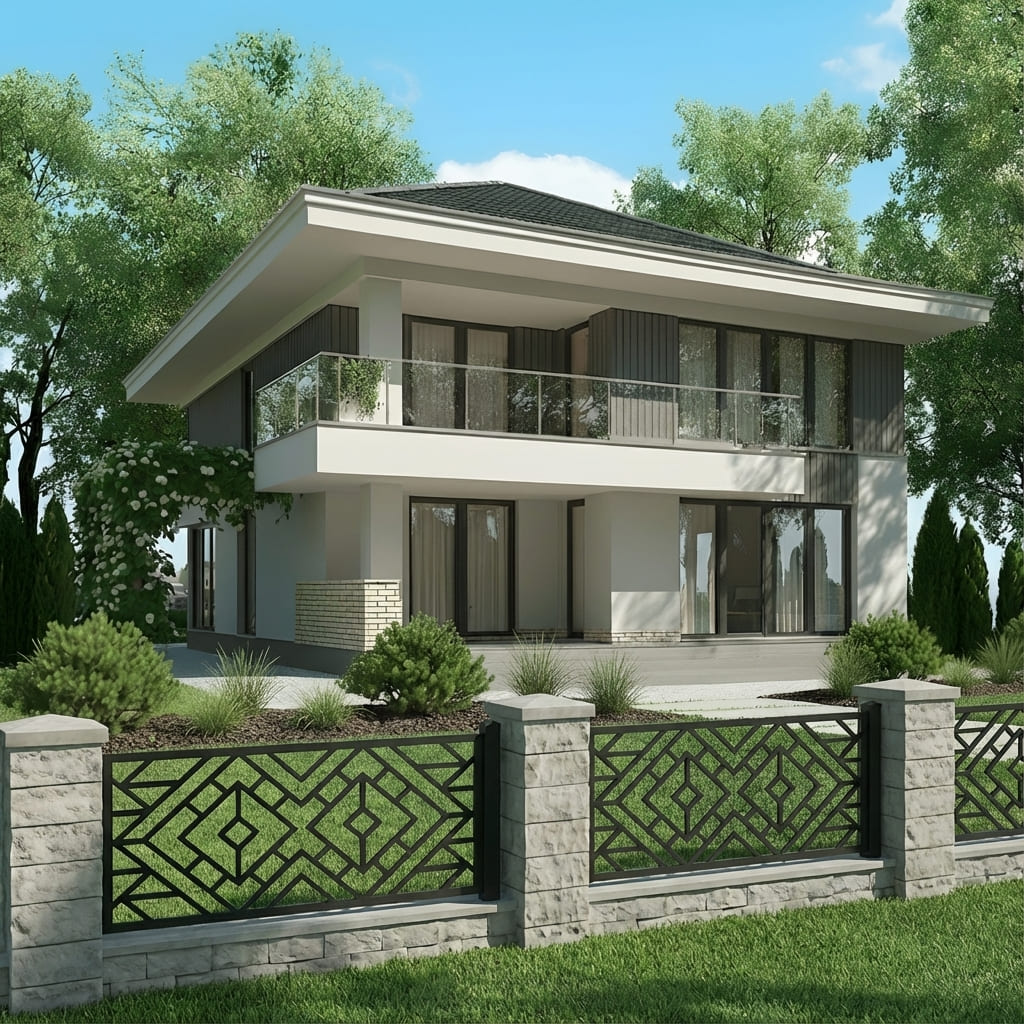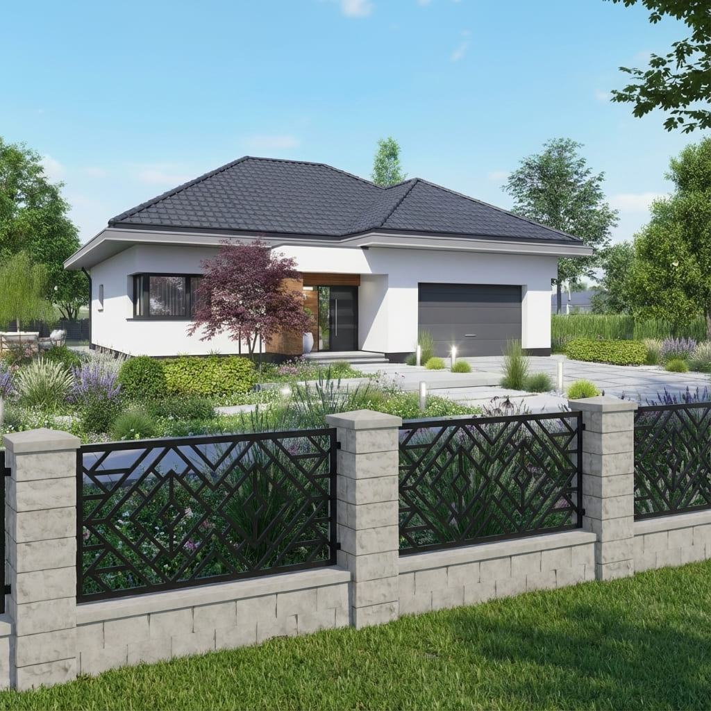 Nasze panele ogrodzeniowe o motywie geometrycznym łączą nowoczesny styl z solidną konstrukcją. Geometryczne wzory nadają otoczeniu elegancki i harmonijny charakter, przyciągają wzrok oraz wprowadzają wrażenie wizualnej lekkości. Panele doskonale sprawdzą się jako przęsła ogrodzeniowe, wypełnienia bram, balustrad oraz dekoracyjne ścianki działowe – łącząc estetykę z funkcjonalnością, zapewniając prywatność i trwałość na lata.