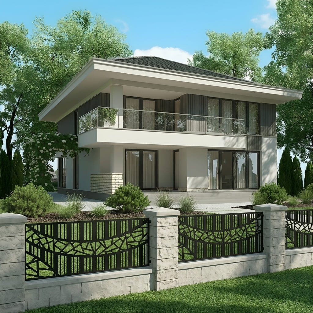 Nasze panele ogrodzeniowe o motywie geometrycznym łączą nowoczesny styl z solidną konstrukcją. Geometryczne wzory nadają otoczeniu elegancki i harmonijny charakter, przyciągają wzrok oraz wprowadzają wrażenie wizualnej lekkości. Panele doskonale sprawdzą się jako przęsła ogrodzeniowe, wypełnienia bram, balustrad oraz dekoracyjne ścianki działowe – łącząc estetykę z funkcjonalnością, zapewniając prywatność i trwałość na lata.