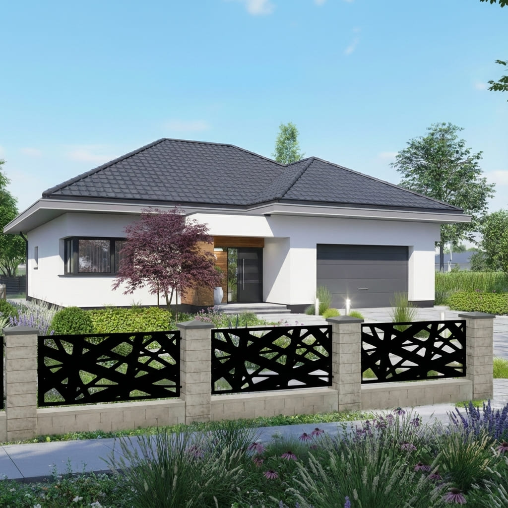 Nasze panele ogrodzeniowe o motywie geometrycznym łączą nowoczesny styl z solidną konstrukcją. Geometryczne wzory nadają otoczeniu elegancki i harmonijny charakter, przyciągają wzrok oraz wprowadzają wrażenie wizualnej lekkości. Panele doskonale sprawdzą się jako przęsła ogrodzeniowe, wypełnienia bram, balustrad oraz dekoracyjne ścianki działowe – łącząc estetykę z funkcjonalnością, zapewniając prywatność i trwałość na lata.