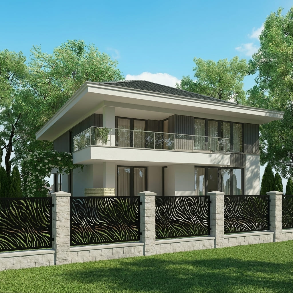 Nasze panele ogrodzeniowe o motywie geometrycznym łączą nowoczesny styl z solidną konstrukcją. Geometryczne wzory nadają otoczeniu elegancki i harmonijny charakter, przyciągają wzrok oraz wprowadzają wrażenie wizualnej lekkości. Panele doskonale sprawdzą się jako przęsła ogrodzeniowe, wypełnienia bram, balustrad oraz dekoracyjne ścianki działowe – łącząc estetykę z funkcjonalnością, zapewniając prywatność i trwałość na lata.