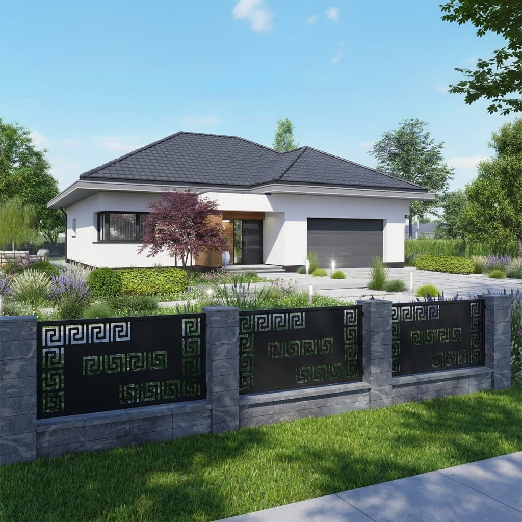 Nasze panele ogrodzeniowe o motywie geometrycznym łączą nowoczesny styl z solidną konstrukcją. Geometryczne wzory nadają otoczeniu elegancki i harmonijny charakter, przyciągają wzrok oraz wprowadzają wrażenie wizualnej lekkości. Panele doskonale sprawdzą się jako przęsła ogrodzeniowe, wypełnienia bram, balustrad oraz dekoracyjne ścianki działowe – łącząc estetykę z funkcjonalnością, zapewniając prywatność i trwałość na lata.