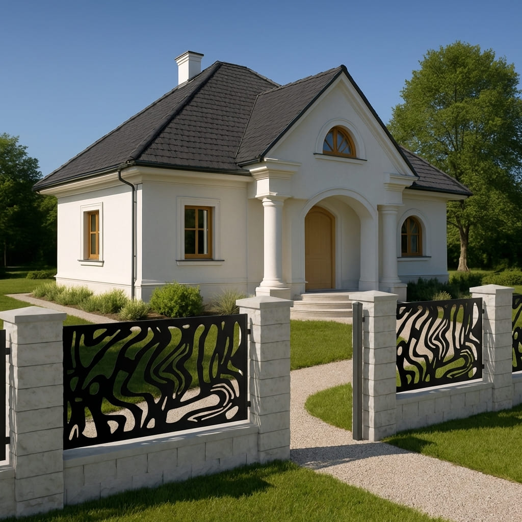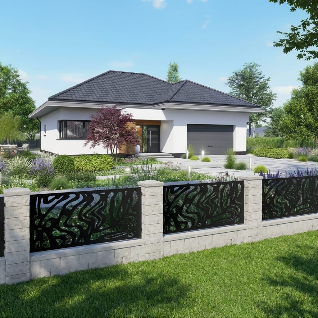 Nasze panele ogrodzeniowe o motywie geometrycznym łączą nowoczesny styl z solidną konstrukcją. Geometryczne wzory nadają otoczeniu elegancki i harmonijny charakter, przyciągają wzrok oraz wprowadzają wrażenie wizualnej lekkości. Panele doskonale sprawdzą się jako przęsła ogrodzeniowe, wypełnienia bram, balustrad oraz dekoracyjne ścianki działowe – łącząc estetykę z funkcjonalnością, zapewniając prywatność i trwałość na lata.
