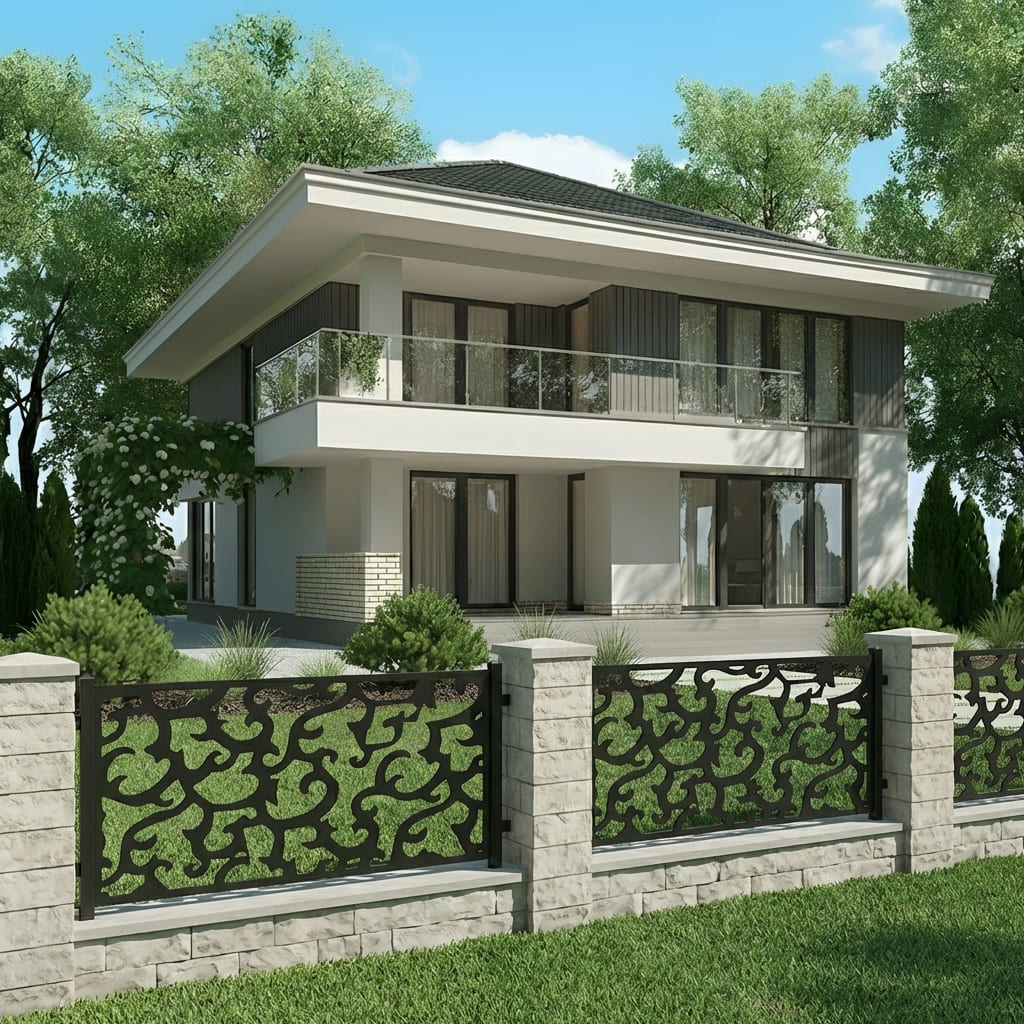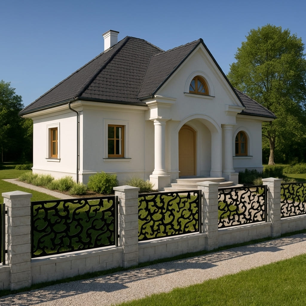 Nasze panele ogrodzeniowe o motywie geometrycznym łączą nowoczesny styl z solidną konstrukcją. Geometryczne wzory nadają otoczeniu elegancki i harmonijny charakter, przyciągają wzrok oraz wprowadzają wrażenie wizualnej lekkości. Panele doskonale sprawdzą się jako przęsła ogrodzeniowe, wypełnienia bram, balustrad oraz dekoracyjne ścianki działowe – łącząc estetykę z funkcjonalnością, zapewniając prywatność i trwałość na lata.