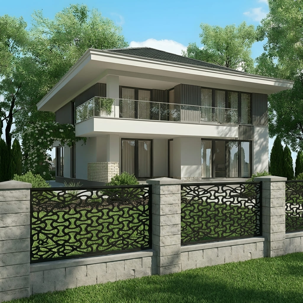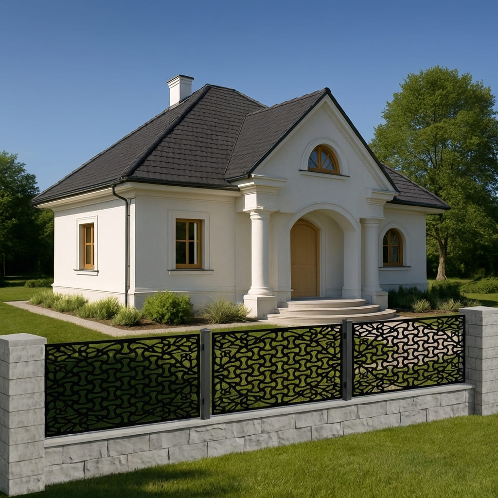 Nasze panele ogrodzeniowe o motywie geometrycznym łączą nowoczesny styl z solidną konstrukcją. Geometryczne wzory nadają otoczeniu elegancki i harmonijny charakter, przyciągają wzrok oraz wprowadzają wrażenie wizualnej lekkości. Panele doskonale sprawdzą się jako przęsła ogrodzeniowe, wypełnienia bram, balustrad oraz dekoracyjne ścianki działowe – łącząc estetykę z funkcjonalnością, zapewniając prywatność i trwałość na lata.