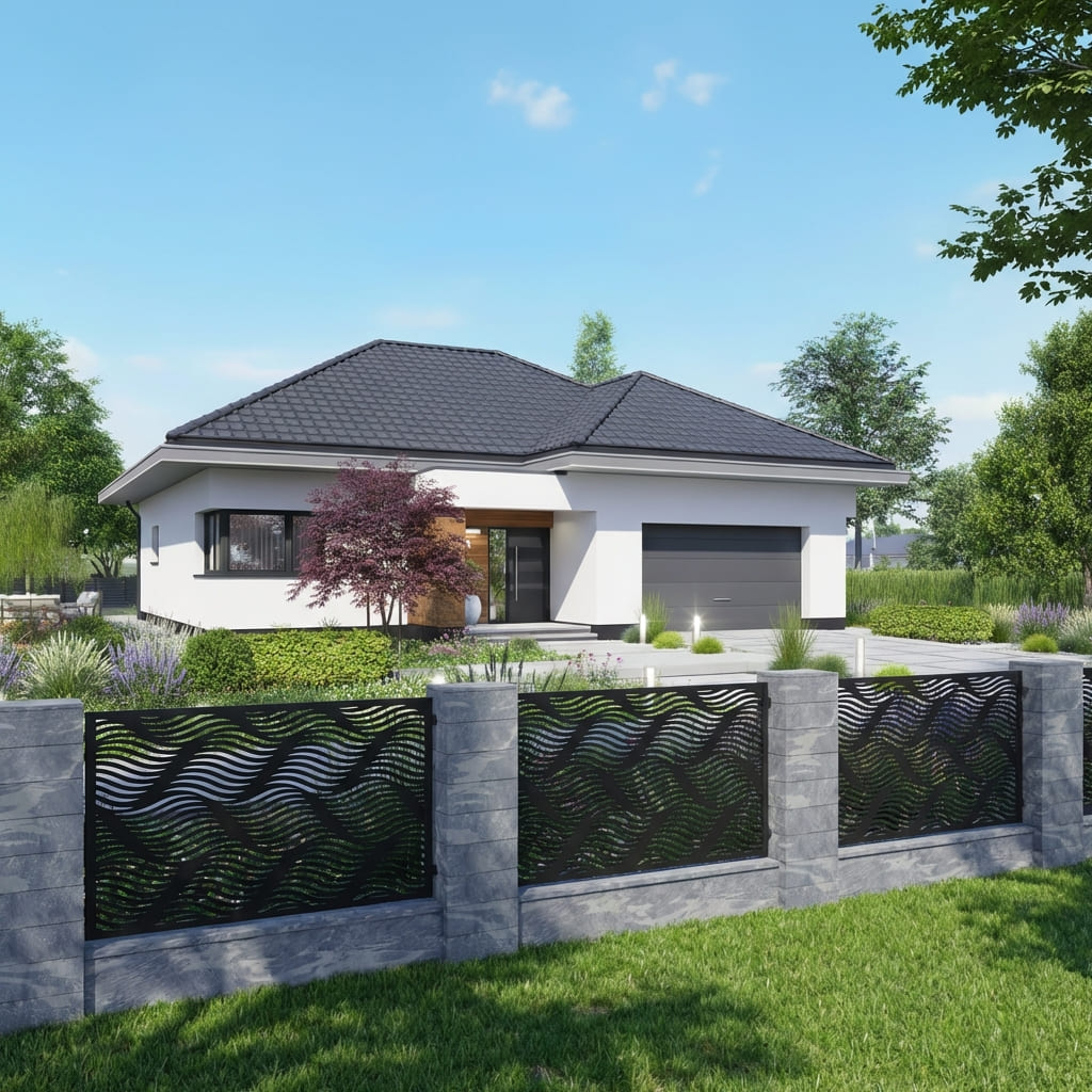 Nasze panele ogrodzeniowe o motywie geometrycznym łączą nowoczesny styl z solidną konstrukcją. Geometryczne wzory nadają otoczeniu elegancki i harmonijny charakter, przyciągają wzrok oraz wprowadzają wrażenie wizualnej lekkości. Panele doskonale sprawdzą się jako przęsła ogrodzeniowe, wypełnienia bram, balustrad oraz dekoracyjne ścianki działowe – łącząc estetykę z funkcjonalnością, zapewniając prywatność i trwałość na lata.
