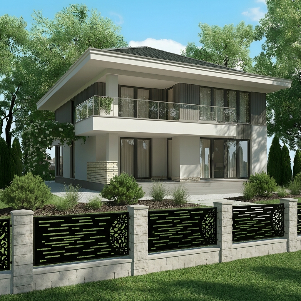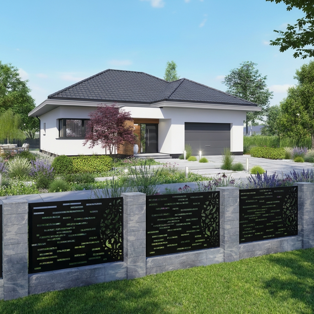 Nasze panele ogrodzeniowe o motywie geometrycznym łączą nowoczesny styl z solidną konstrukcją. Geometryczne wzory nadają otoczeniu elegancki i harmonijny charakter, przyciągają wzrok oraz wprowadzają wrażenie wizualnej lekkości. Panele doskonale sprawdzą się jako przęsła ogrodzeniowe, wypełnienia bram, balustrad oraz dekoracyjne ścianki działowe – łącząc estetykę z funkcjonalnością, zapewniając prywatność i trwałość na lata.