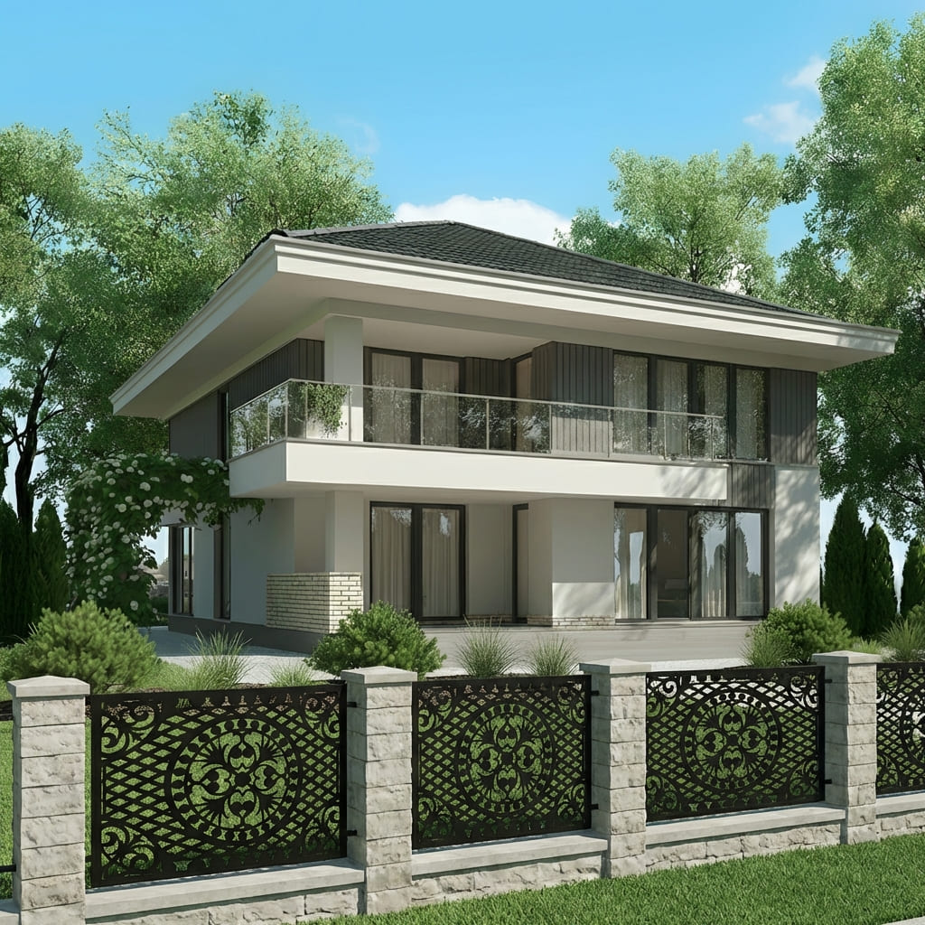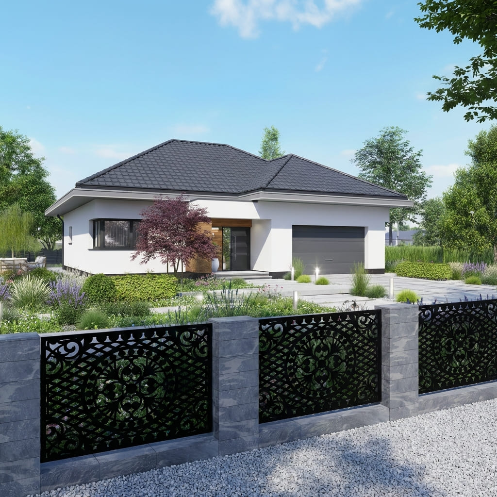 Nasze panele ogrodzeniowe o motywie geometrycznym łączą nowoczesny styl z solidną konstrukcją. Geometryczne wzory nadają otoczeniu elegancki i harmonijny charakter, przyciągają wzrok oraz wprowadzają wrażenie wizualnej lekkości. Panele doskonale sprawdzą się jako przęsła ogrodzeniowe, wypełnienia bram, balustrad oraz dekoracyjne ścianki działowe – łącząc estetykę z funkcjonalnością, zapewniając prywatność i trwałość na lata.