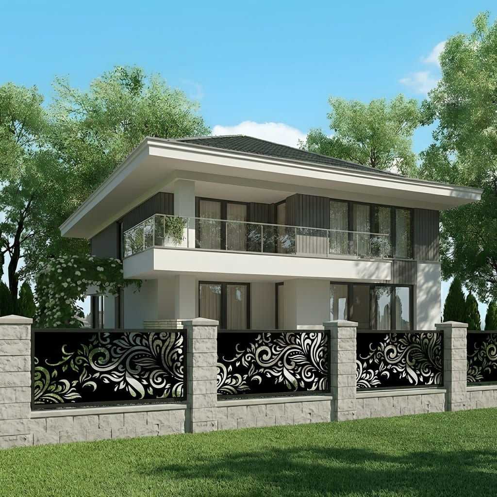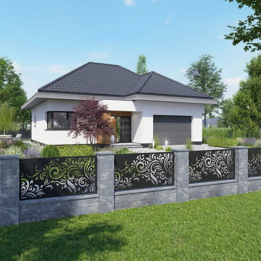 Panel Ogrodzeniowy Ażurowy Metalowy Nowoczesny - Wzór "3000" - Cięcie Laserowe na Wymiar