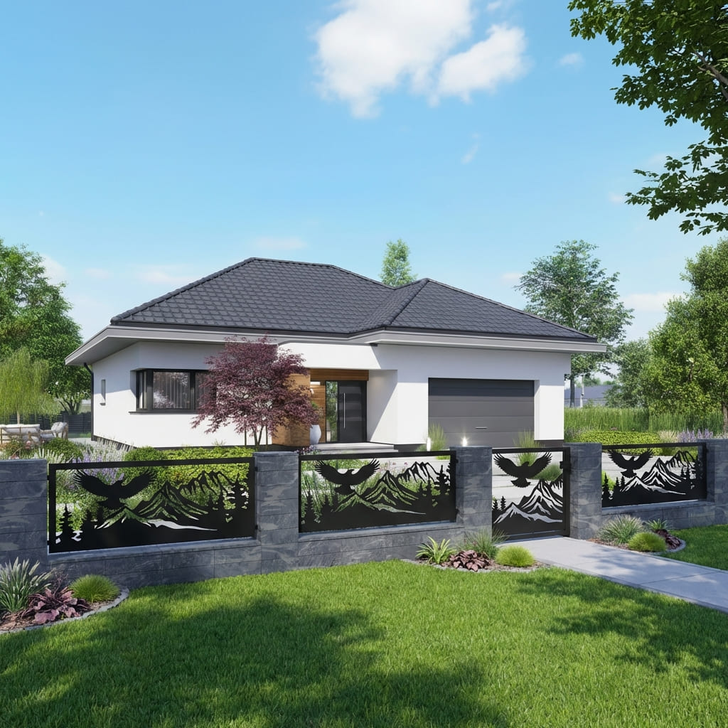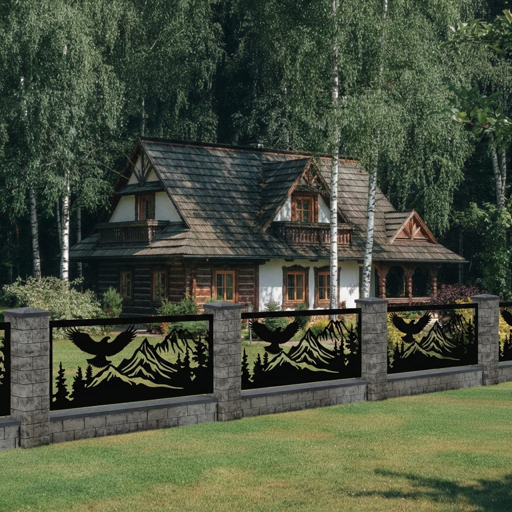 Panel Ogrodzeniowy Metalowy – Motyw Górski (Orzeł i Szczyty) – Wzór "3026" – Kolekcja Natura – Na Wymiar