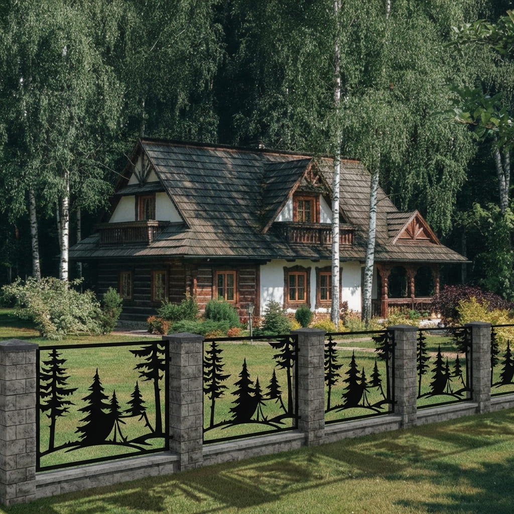 Panel Ogrodzeniowy Metalowy – Motyw Hobby (Biwak w Lesie) – Wzór "3050" – Kolekcja Natura – Na Wymiar