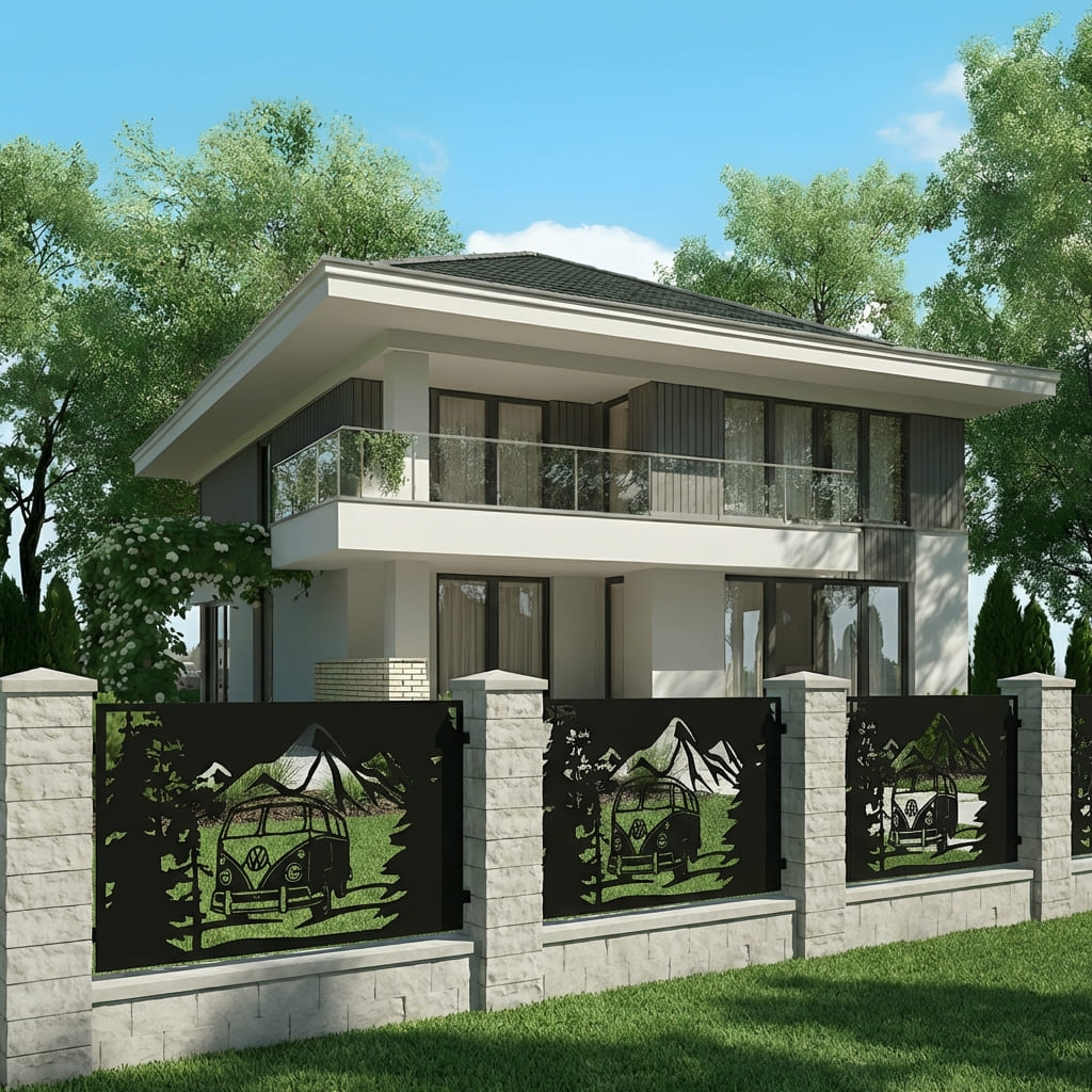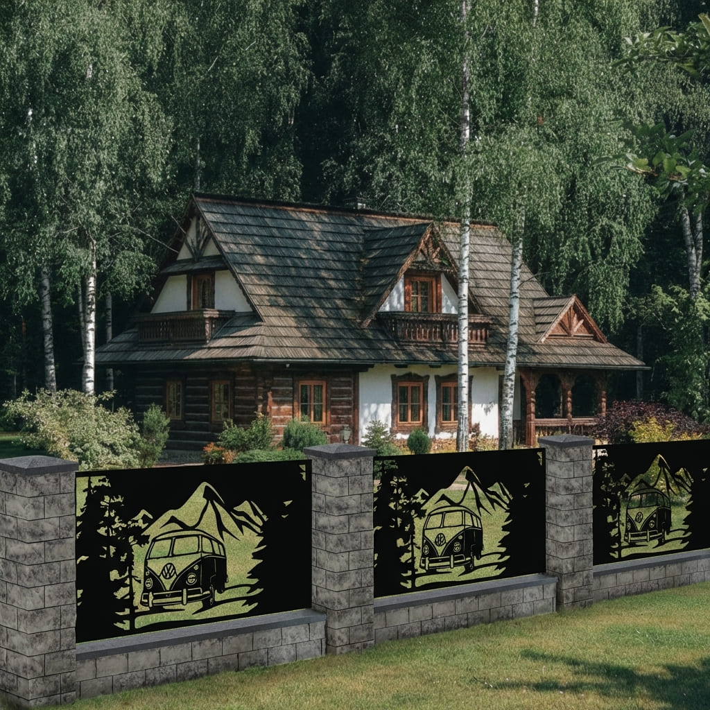 Panel Ogrodzeniowy Metalowy – Motyw Hobby (Przygoda i Klasyczny Kamper) – Wzór "3036" – Kolekcja Natura – Na Wymiar