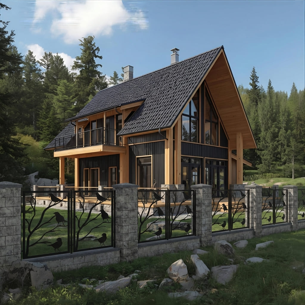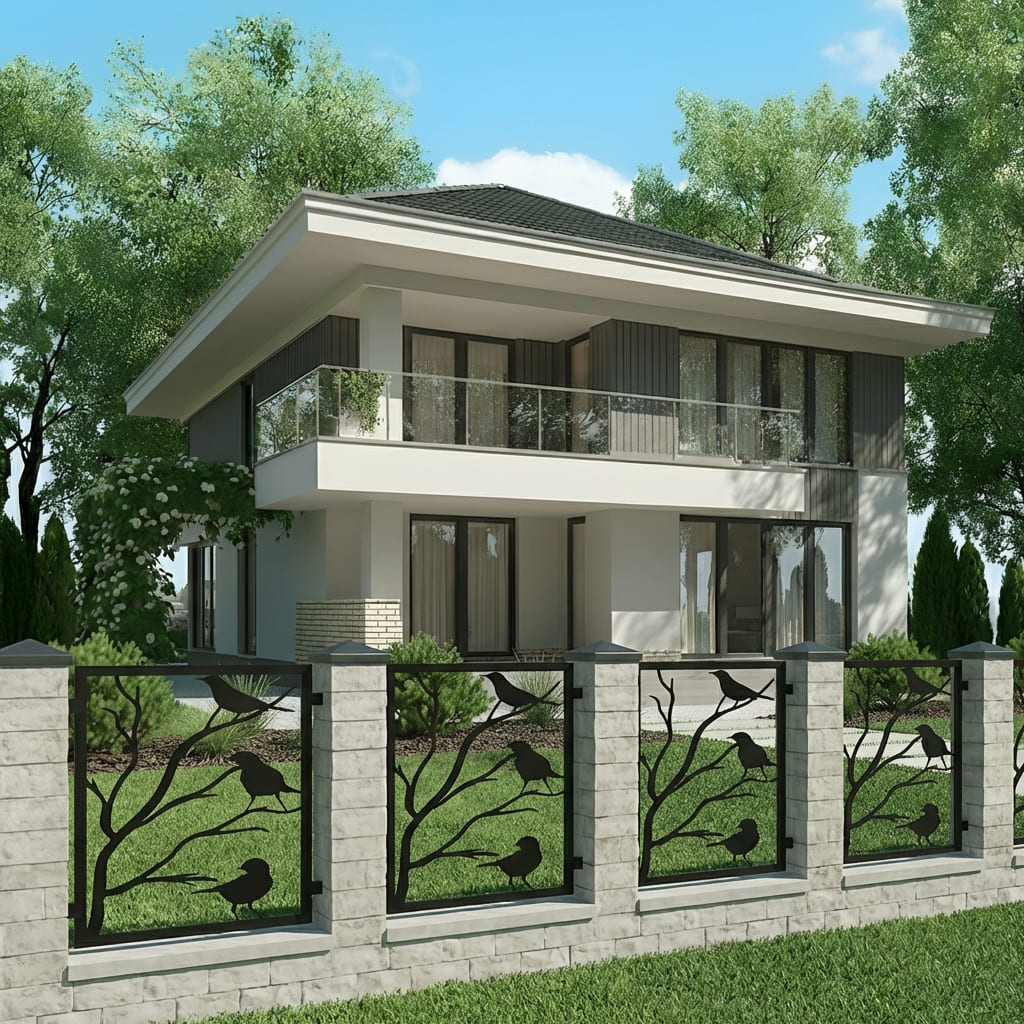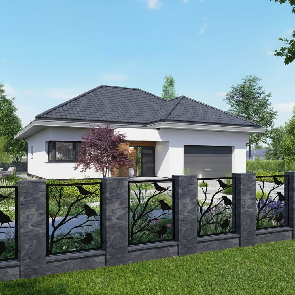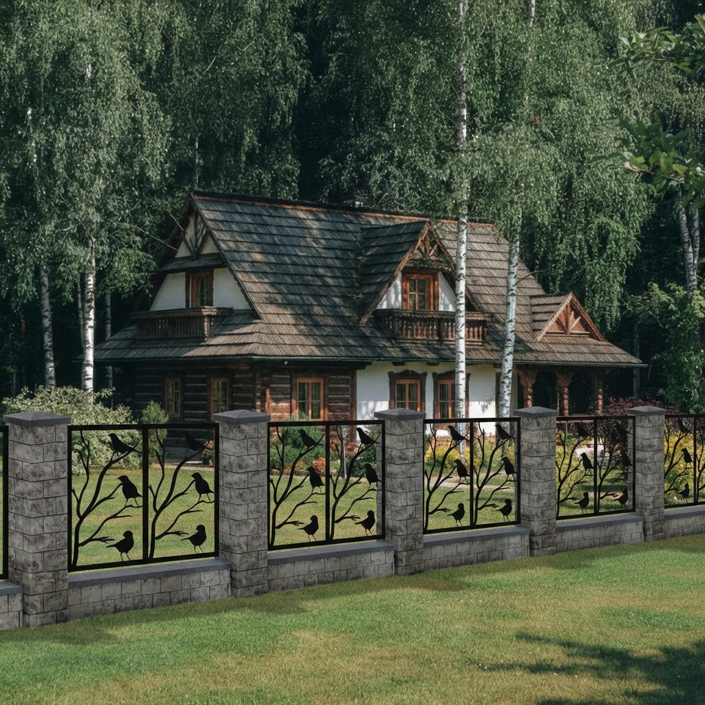 Panel Ogrodzeniowy Metalowy – Motyw Krajobrazowy (Ptaki na Gałęziach) – Wzór "3054" – Kolekcja Natura – Na Wymiar