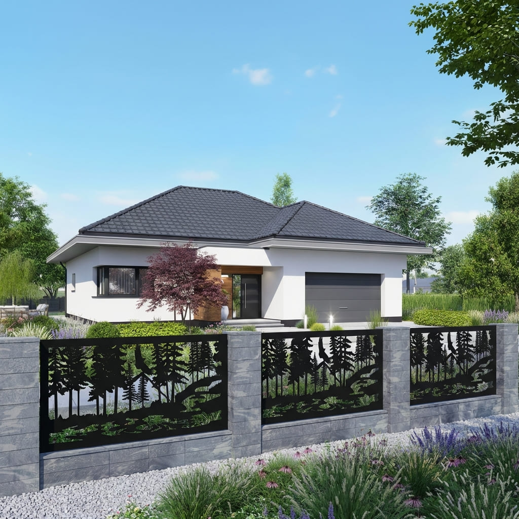 Nasze panele ogrodzeniowe inspirowane naturą przenoszą piękno przyrody do Twojej przestrzeni. Łączą elegancję z lekkością, idealnie komponując się z ogrodową zielenią. Tworzą spokojną, naturalną atmosferę w ogrodzie lub na tarasie, niezależnie od wybranego wzoru.
