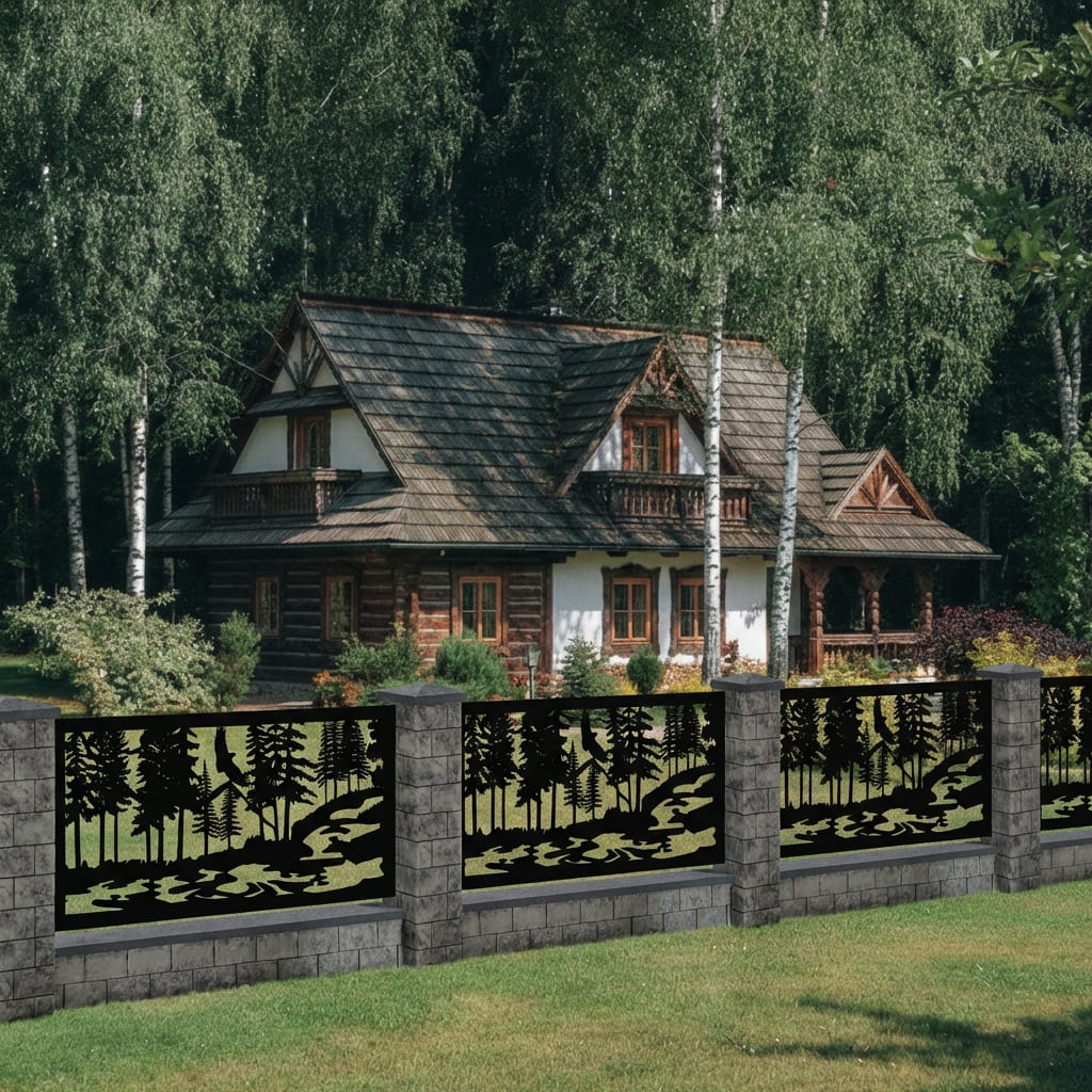 Panel Ogrodzeniowy Metalowy – Motyw Leśny (Las i Orzeł) – Wzór "3028" – Kolekcja Natura – Na Wymiar