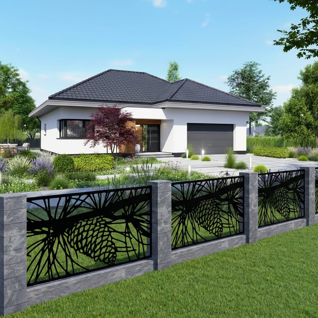 Panel Ogrodzeniowy Metalowy – Motyw Leśny (Szyszka Sosnowa) – Wzór "3011" – Kolekcja Natura – Na Wymiar