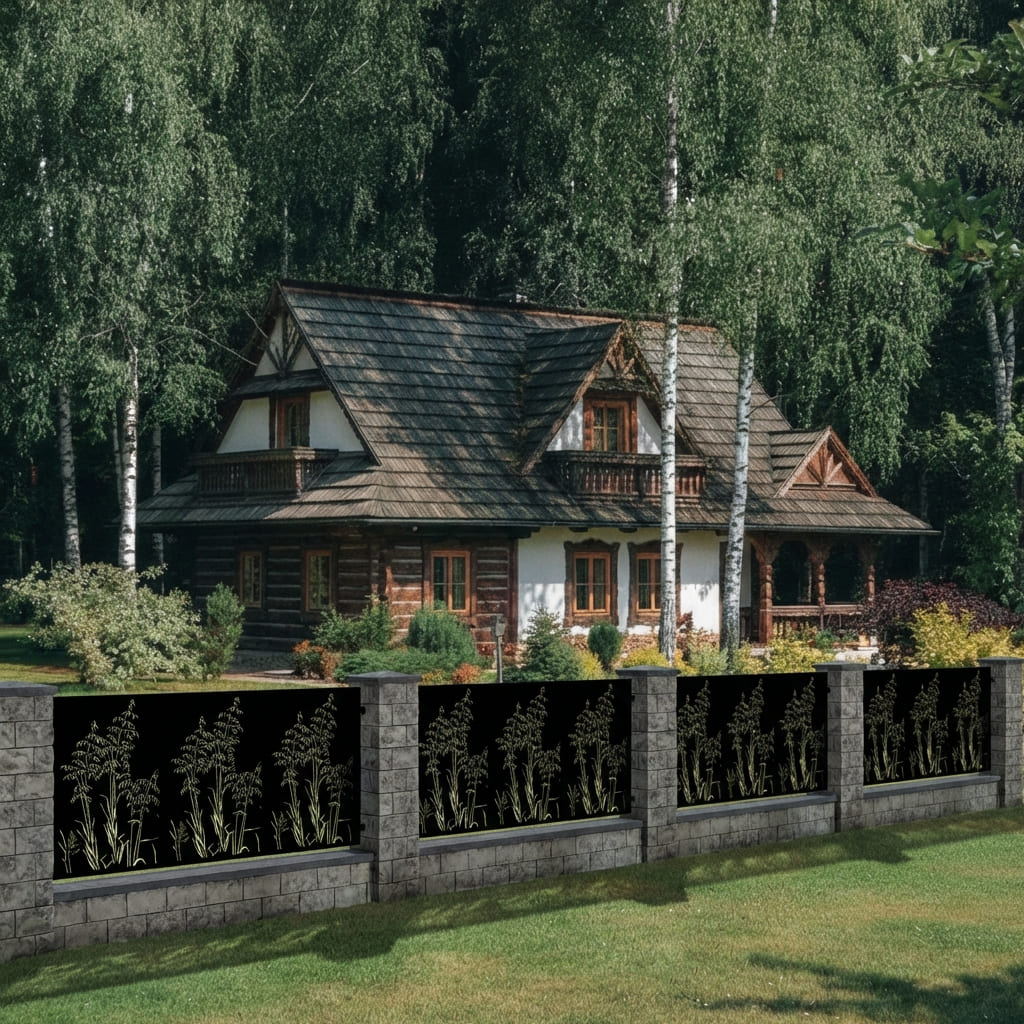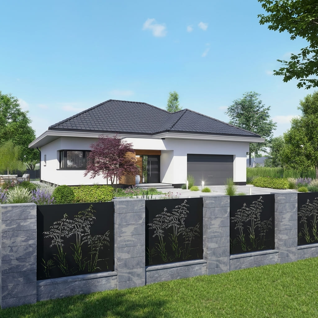 Nasze panele ogrodzeniowe inspirowane naturą przenoszą piękno przyrody do Twojej przestrzeni. Łączą elegancję z lekkością, idealnie komponując się z ogrodową zielenią. Tworzą spokojną, naturalną atmosferę w ogrodzie lub na tarasie, niezależnie od wybranego wzoru.