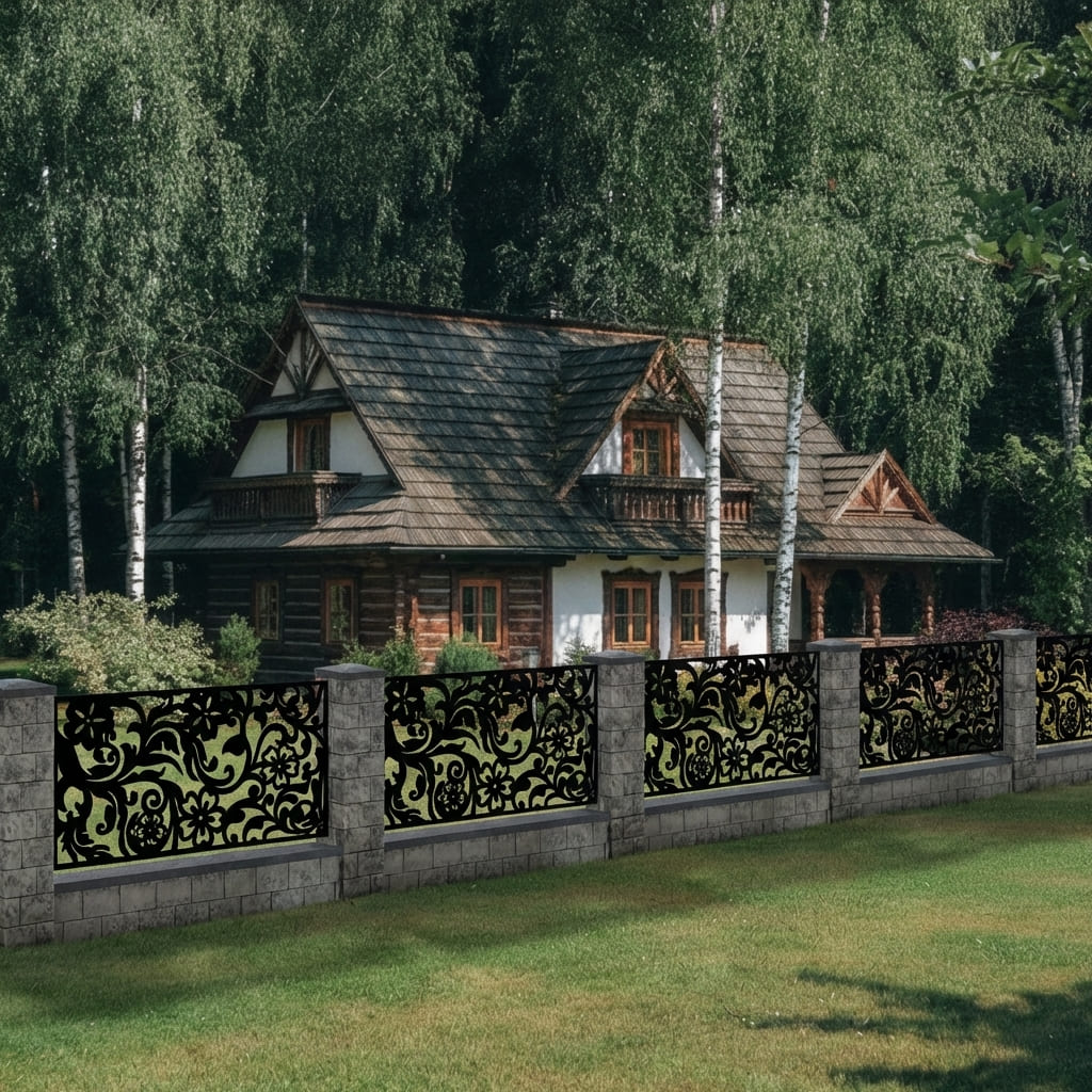 Nasze panele ogrodzeniowe inspirowane naturą przenoszą piękno przyrody do Twojej przestrzeni. Łączą elegancję z lekkością, idealnie komponując się z ogrodową zielenią. Tworzą spokojną, naturalną atmosferę w ogrodzie lub na tarasie, niezależnie od wybranego wzoru.