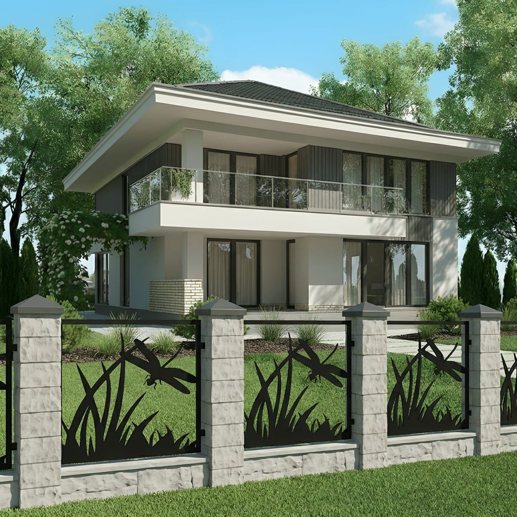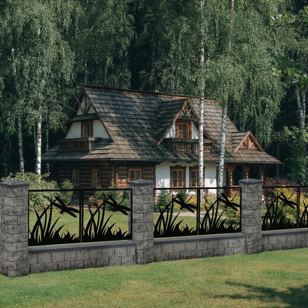 Panel Ogrodzeniowy Metalowy – Motyw Roślinny (Ważka w Trawach) – Wzór "3057" – Kolekcja Natura – Na Wymiar