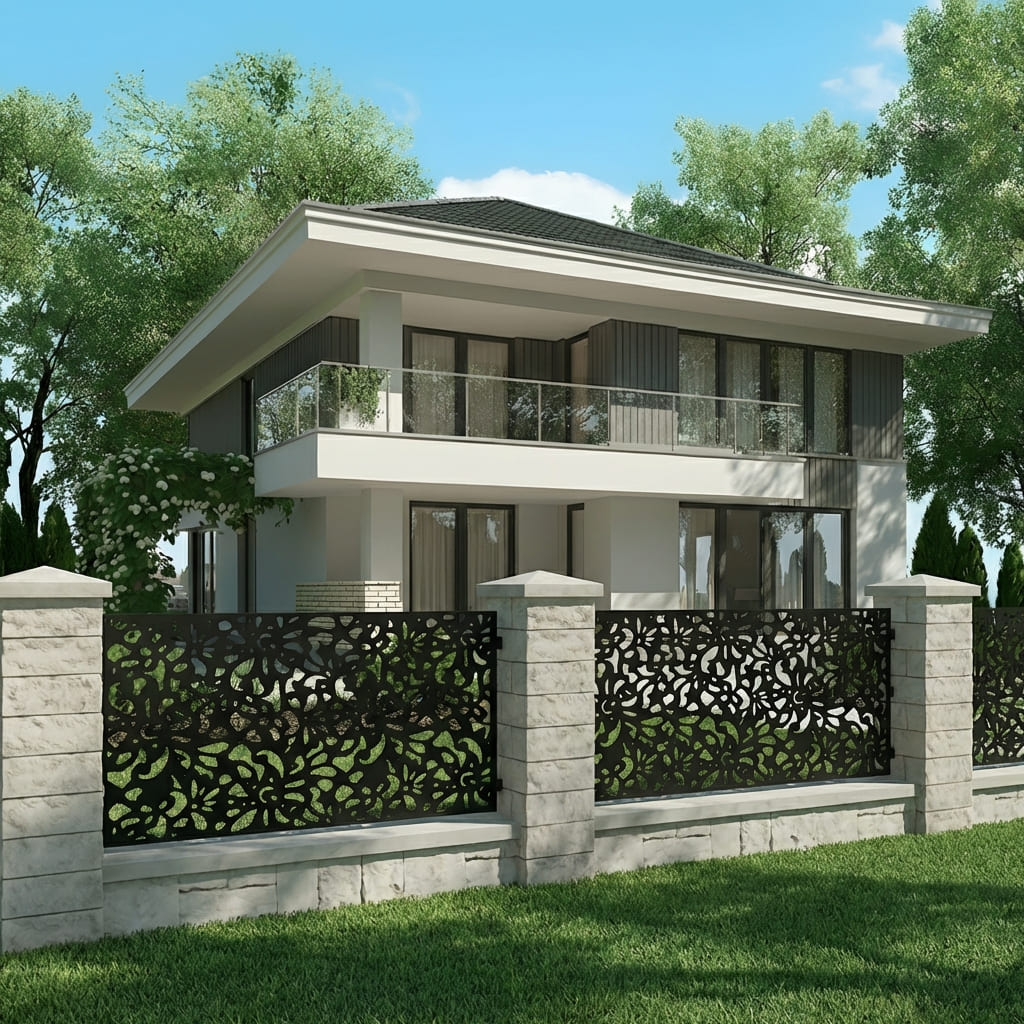Nasze panele ogrodzeniowe inspirowane naturą przenoszą piękno przyrody do Twojej przestrzeni. Łączą elegancję z lekkością, idealnie komponując się z ogrodową zielenią. Tworzą spokojną, naturalną atmosferę w ogrodzie lub na tarasie, niezależnie od wybranego wzoru.