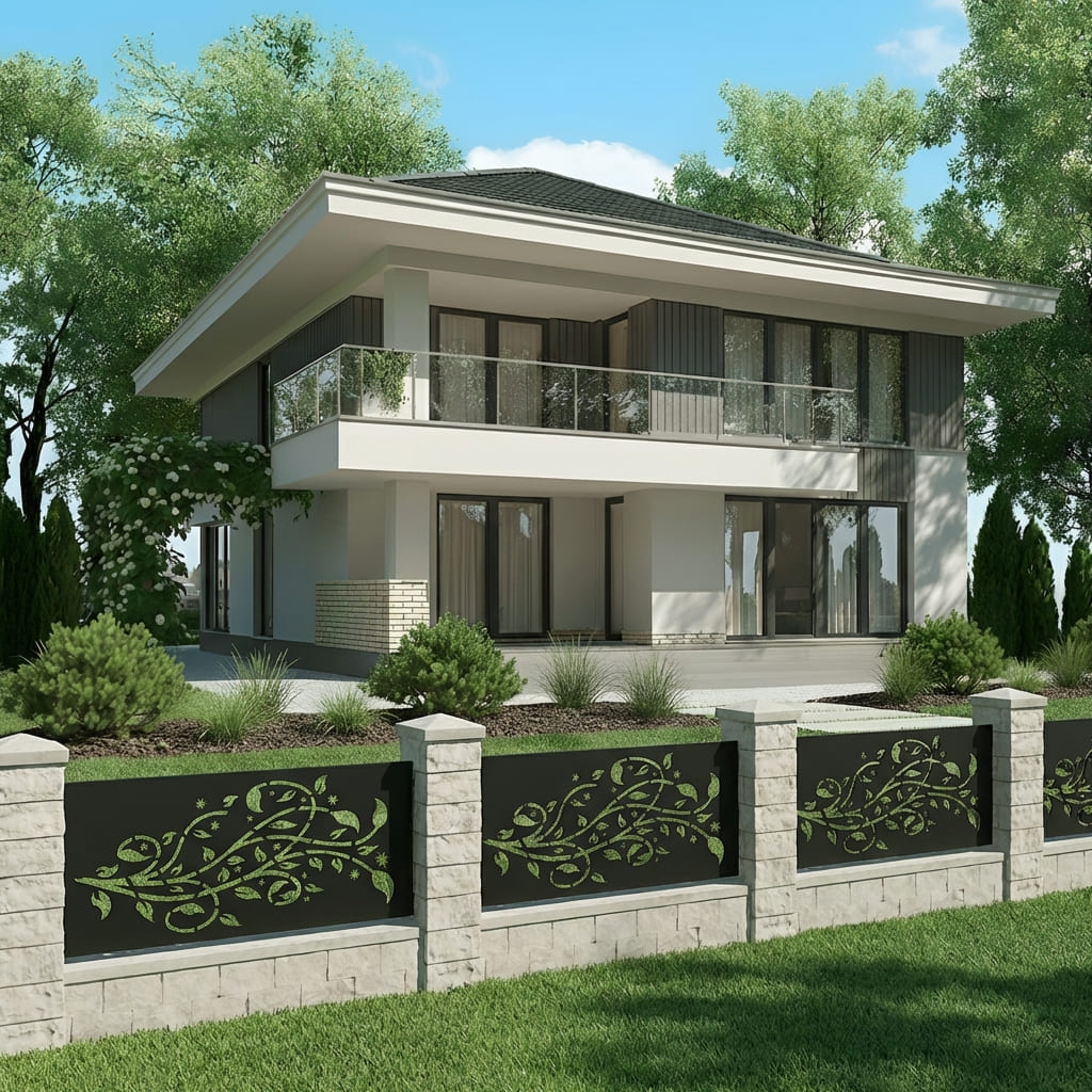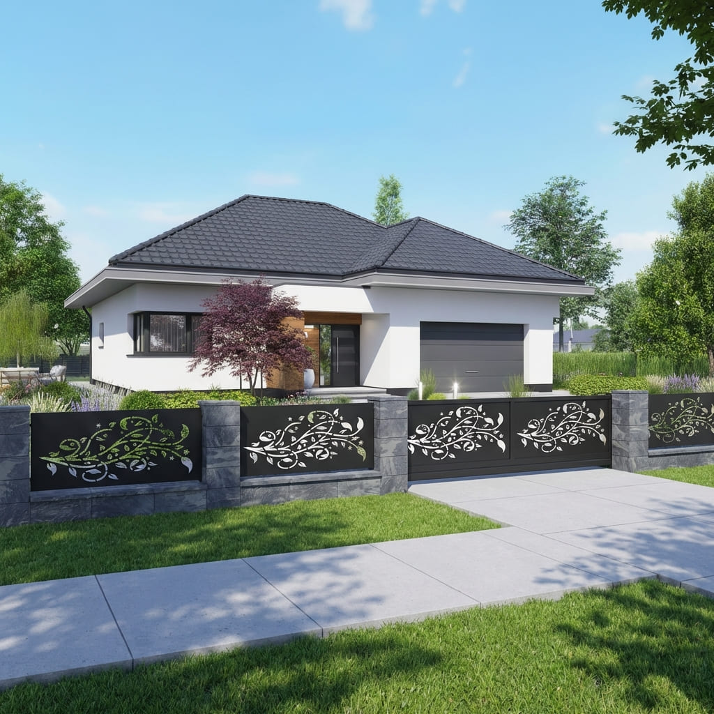 Nasze panele ogrodzeniowe inspirowane naturą przenoszą piękno przyrody do Twojej przestrzeni. Łączą elegancję z lekkością, idealnie komponując się z ogrodową zielenią. Tworzą spokojną, naturalną atmosferę w ogrodzie lub na tarasie, niezależnie od wybranego wzoru.