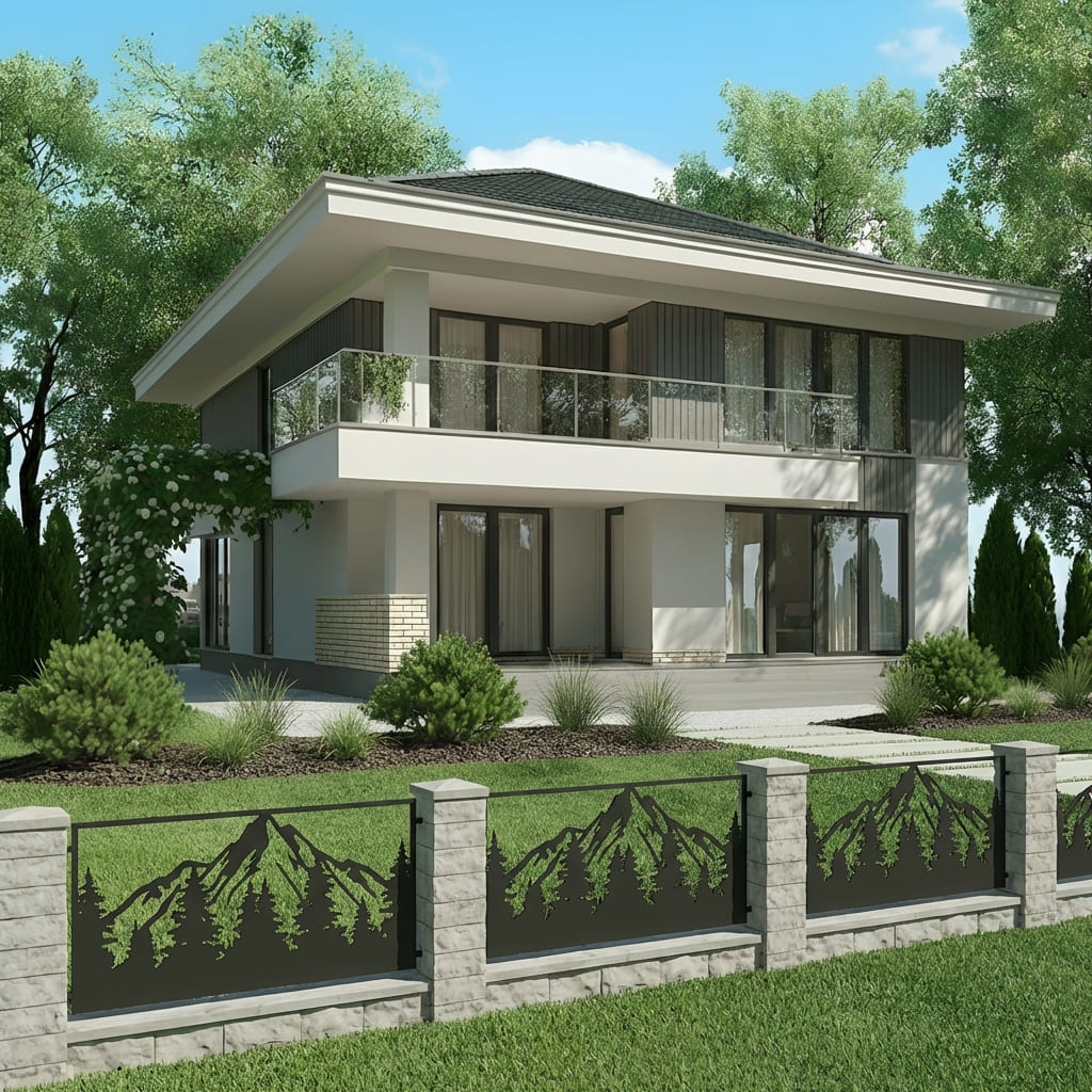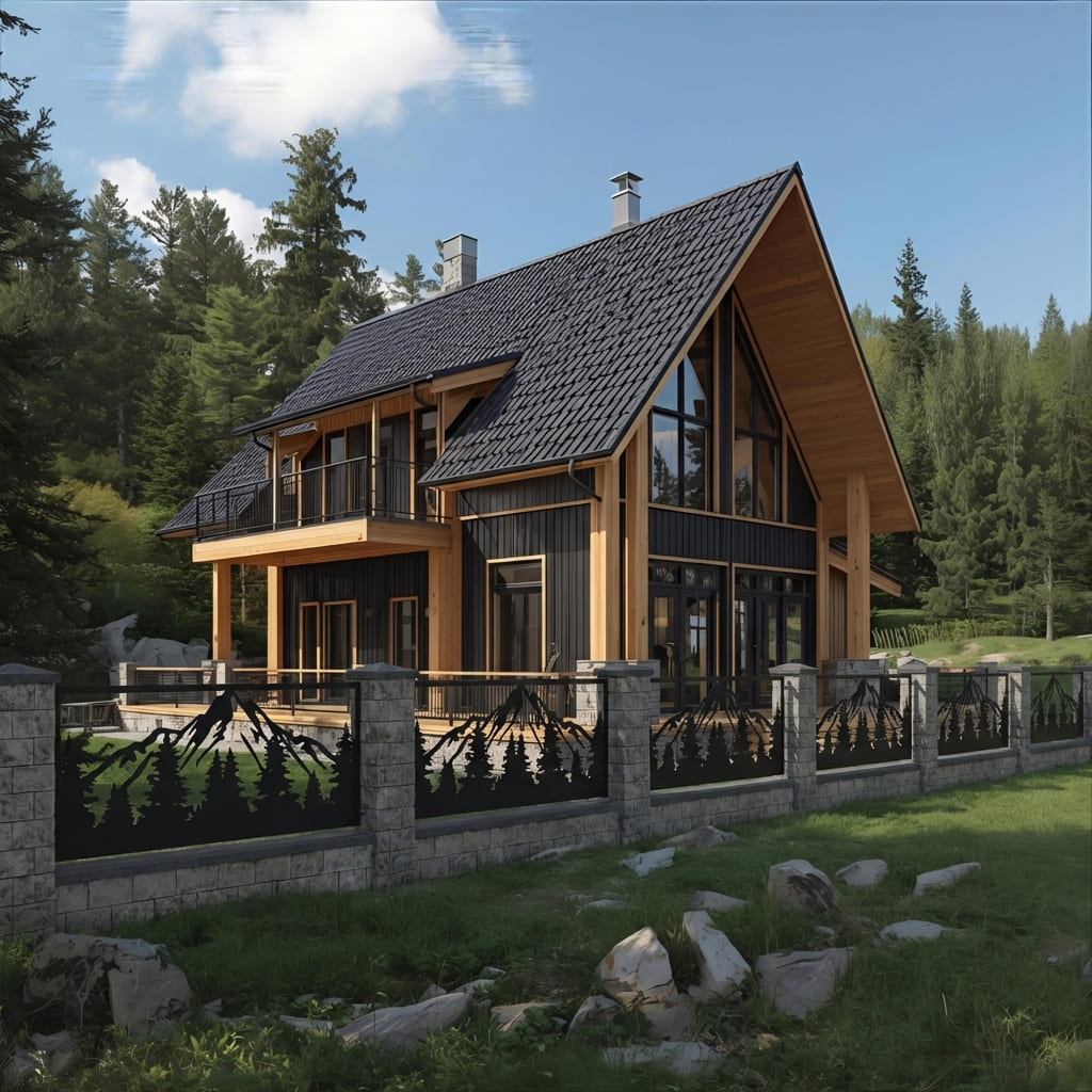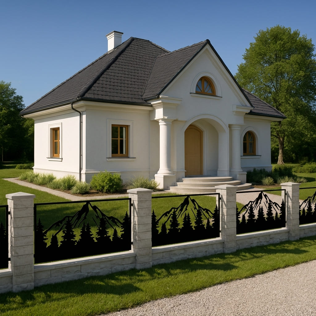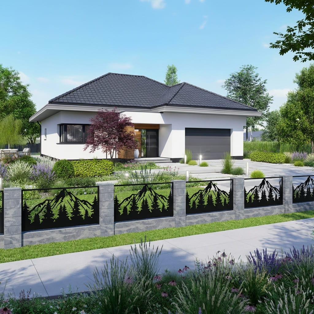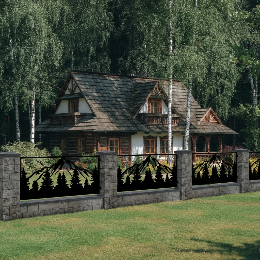 Panel Ogrodzeniowy Metalowy – Wzór "3067" (Leśne Zacisze) – Motyw Góry i Las – Na Wymiar