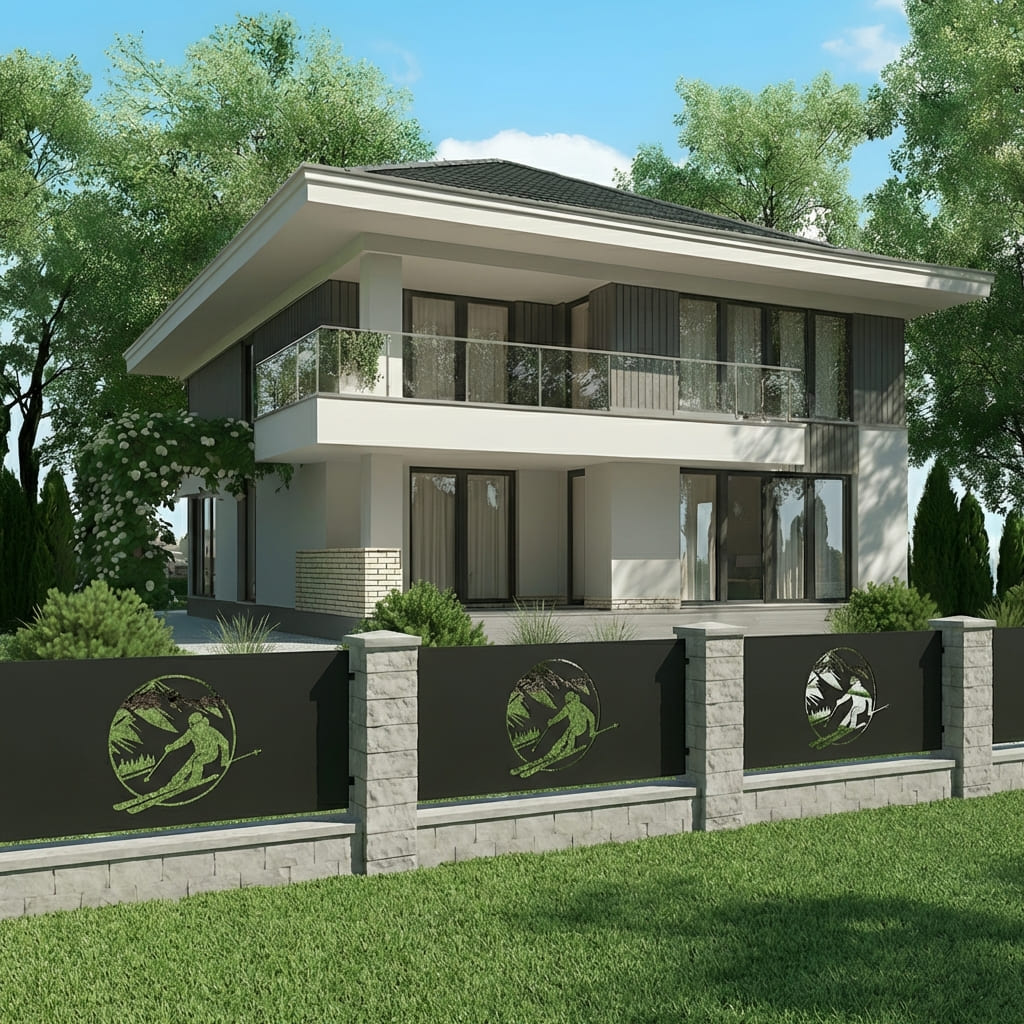 Panel Ogrodzeniowy Metalowy – Wzór "3068" (Narciarz) – Motyw Sporty Zimowe – Na Wymiar