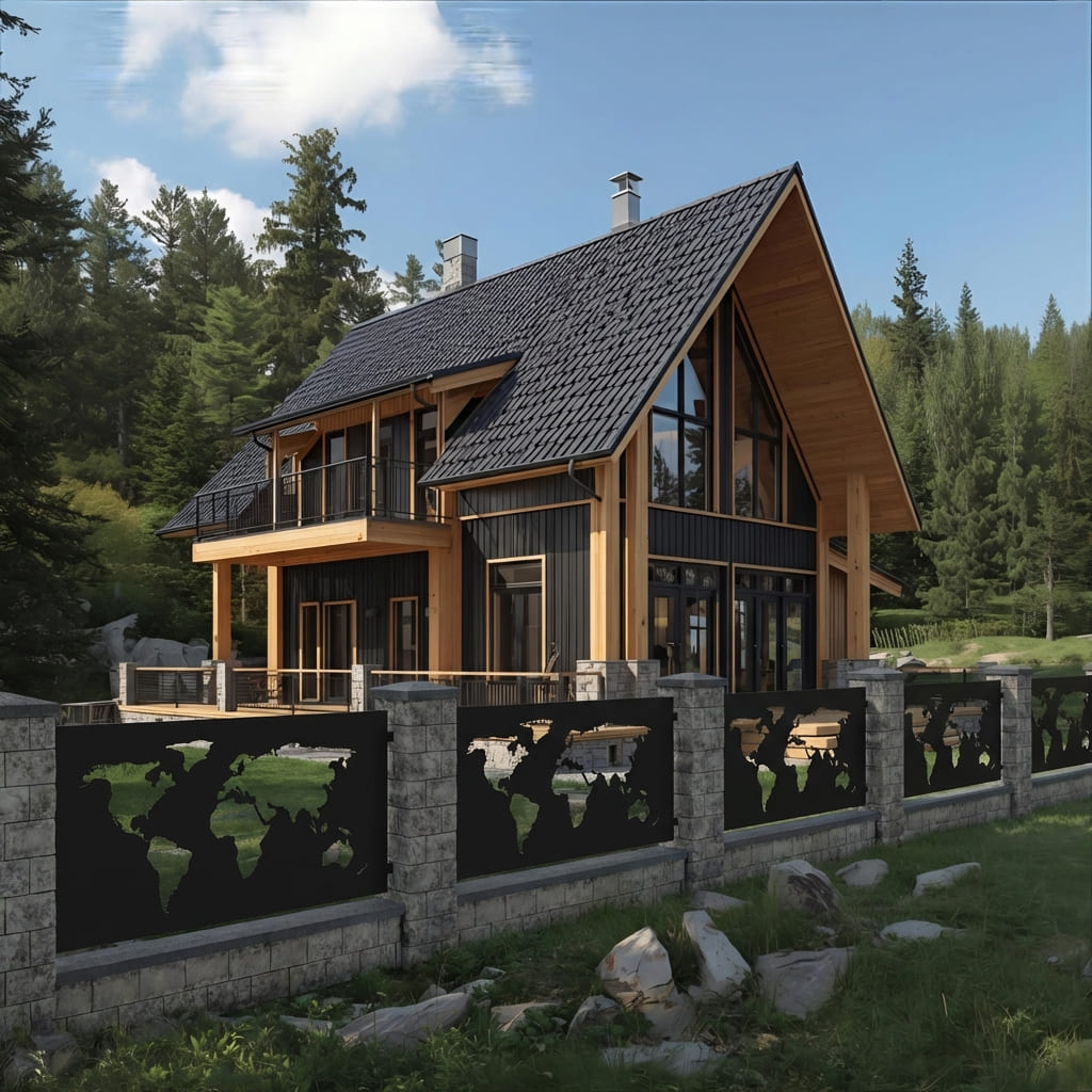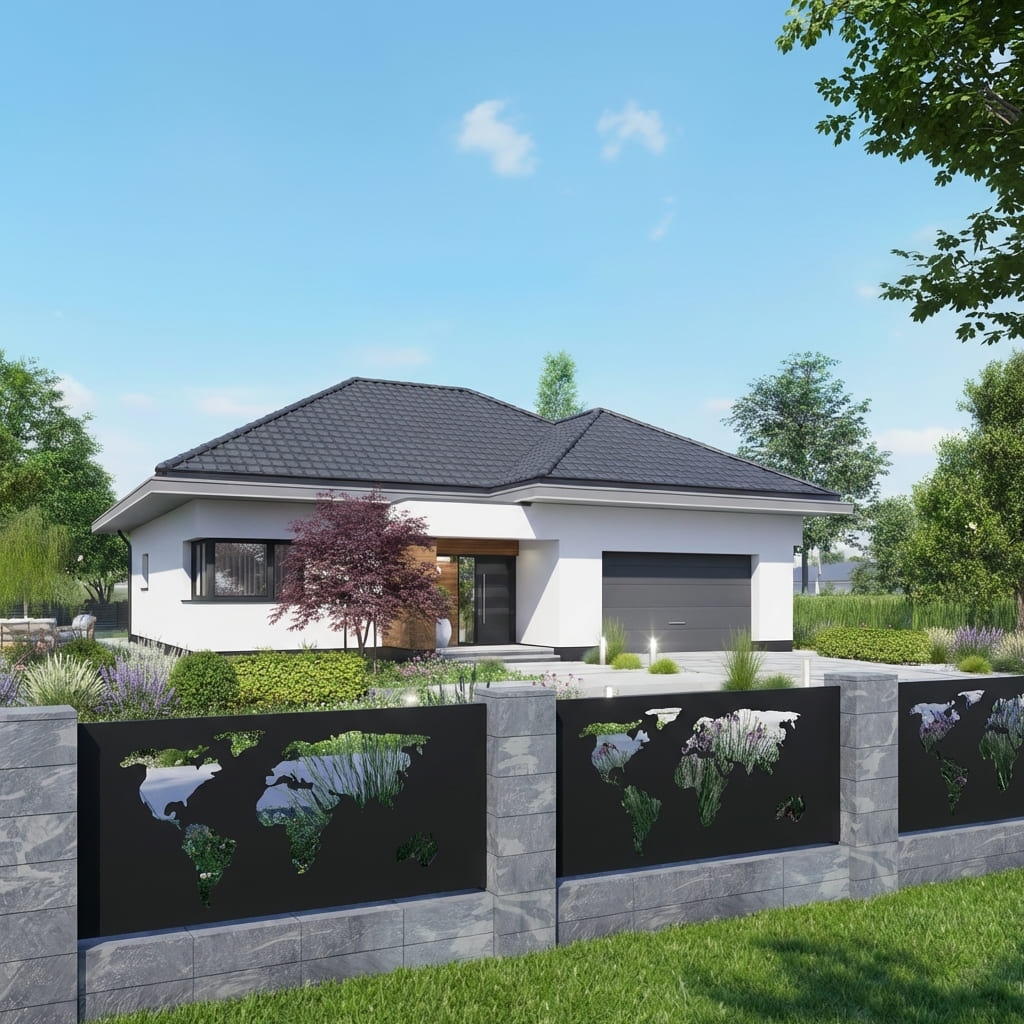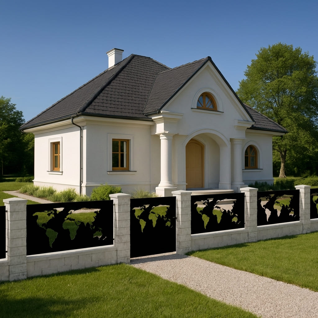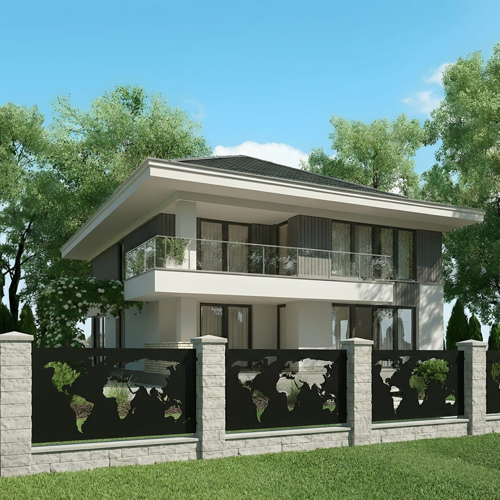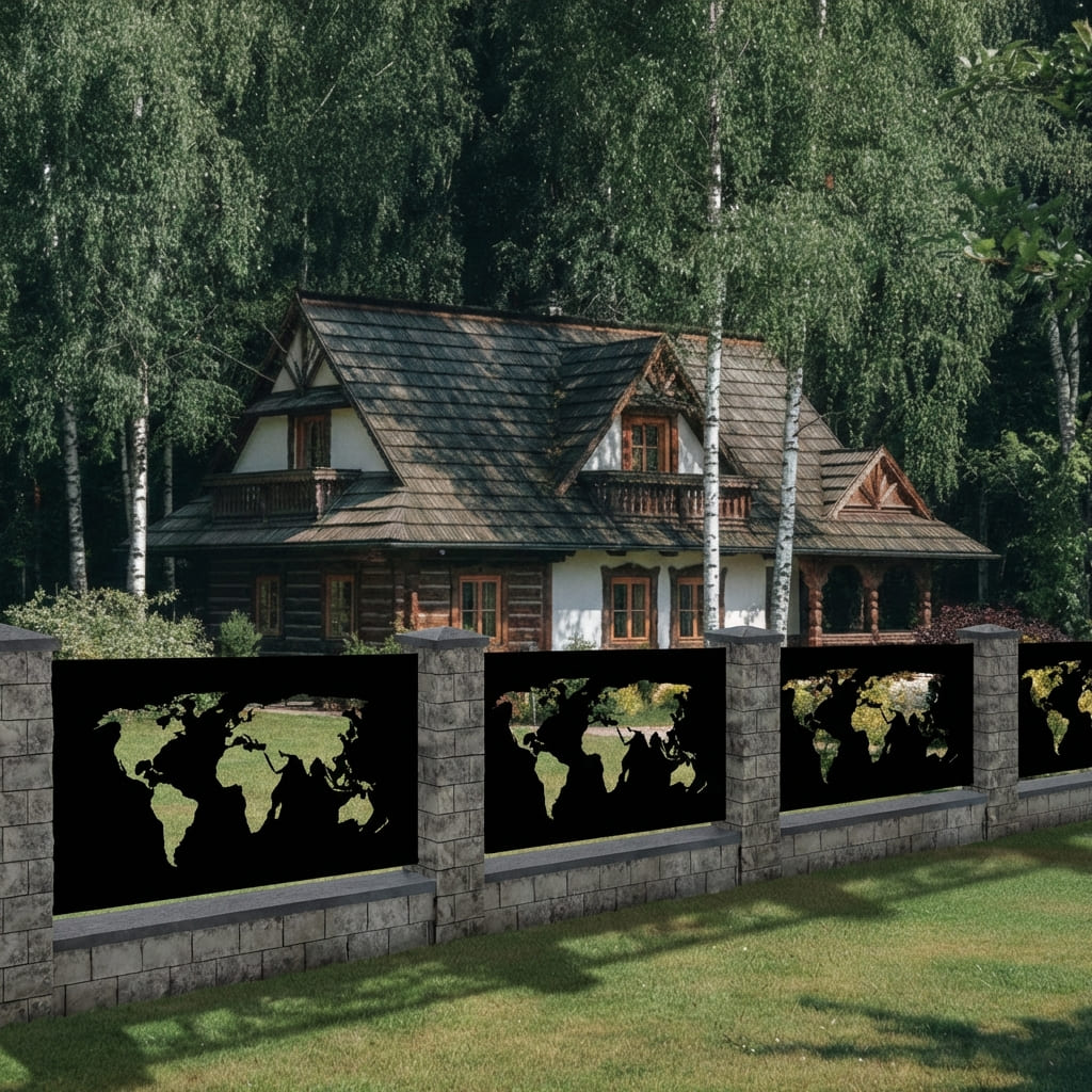 Panel Ogrodzeniowy Metalowy – Wzór "3070" (Globalny Horyzont) – Motyw Mapa Świata – Na Wymiar
