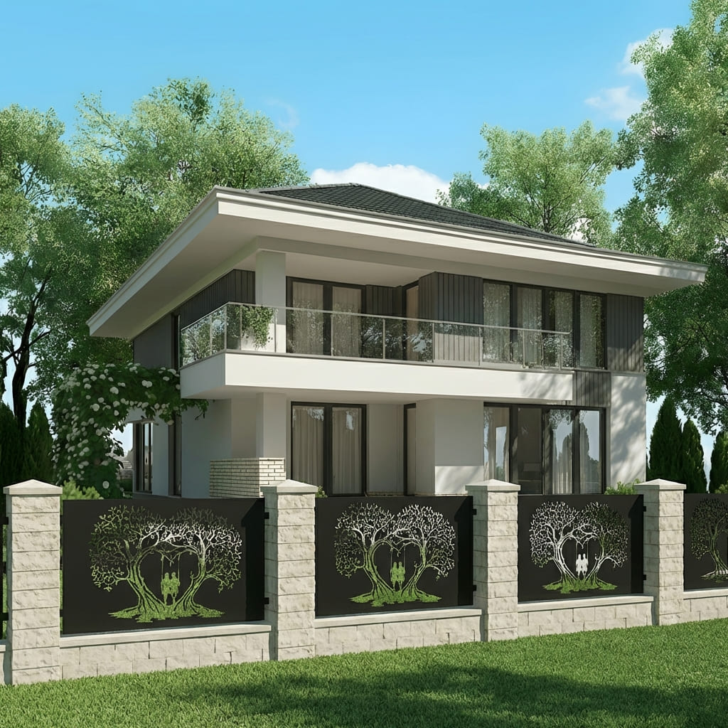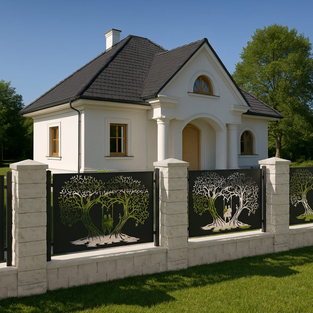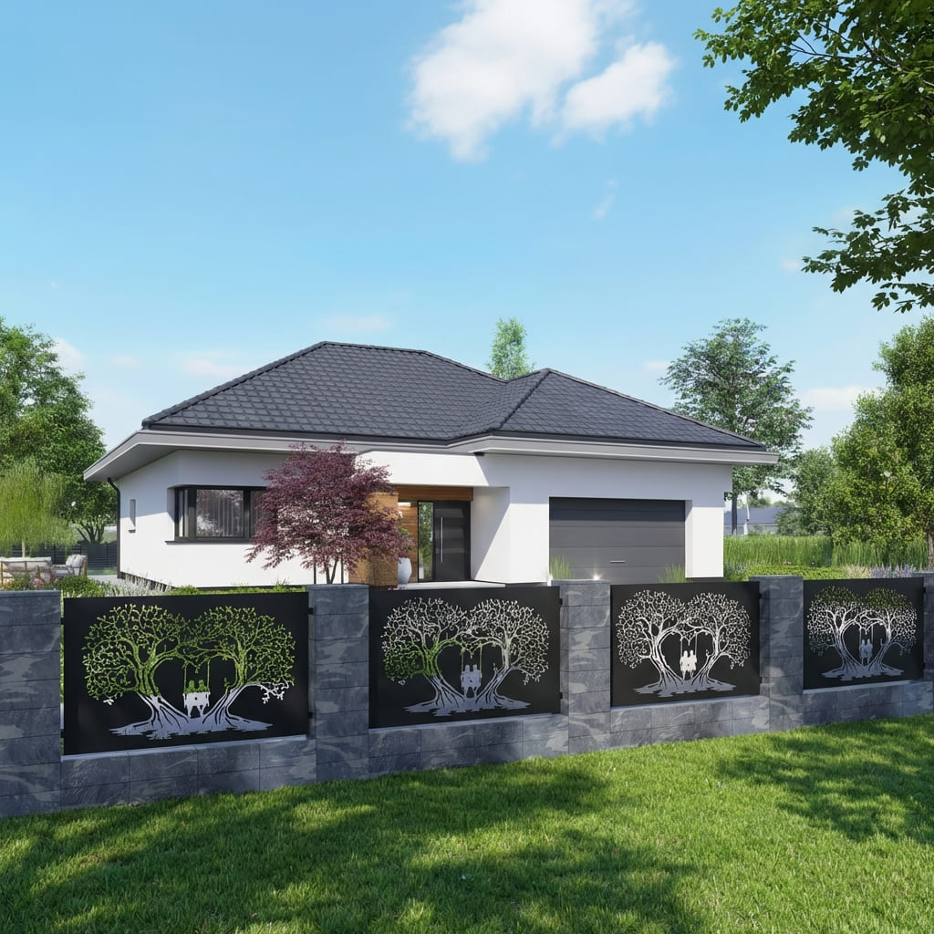 Nasze panele ogrodzeniowe inspirowane naturą przenoszą piękno przyrody do Twojej przestrzeni. Łączą elegancję z lekkością, idealnie komponując się z ogrodową zielenią. Tworzą spokojną, naturalną atmosferę w ogrodzie lub na tarasie, niezależnie od wybranego wzoru.