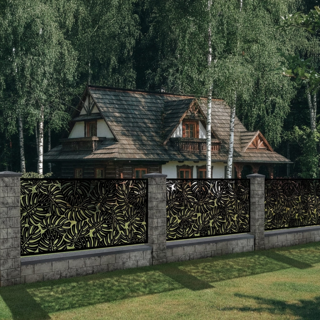 Panel Ogrodzeniowy Metalowy – Wzór "3077" (Monstera) – Motyw Liście Egzotyczne – Kolekcja Natura – Na Wymiar