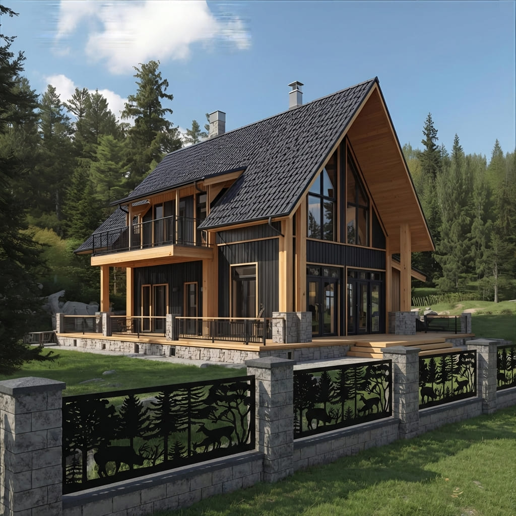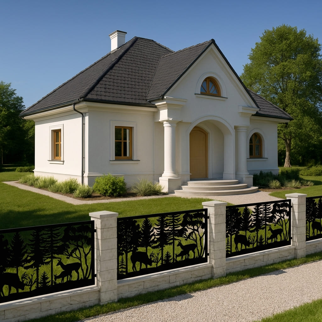 Panel Ogrodzeniowy Ażurowy Metalowy - Motyw Jelenia i Lasu - Wzór "2004" - Cięcie Laserowe na Wymiar