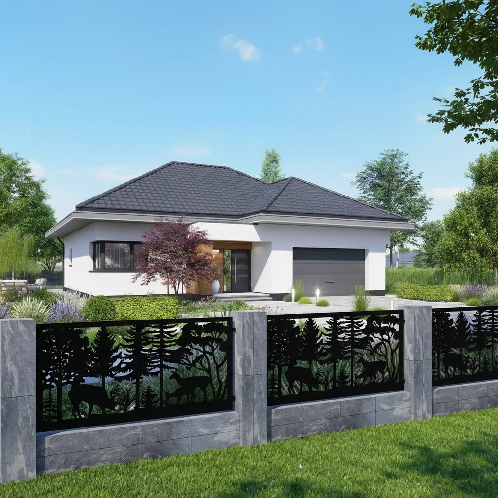 Nasze panele ogrodzeniowe z motywami zwierzęcymi wprowadzają do przestrzeni naturalną dynamikę i niepowtarzalny styl. Sylwetki zwierząt tworzą kompozycję, która przyciąga wzrok i nadaje posesji artystyczny charakter. Idealnie sprawdzają się jako przęsła, balustrady, zabudowy tarasów oraz nowoczesne obrazy ścienne – łącząc estetykę z funkcjonalnością, prywatnością oraz trwałością na lata.