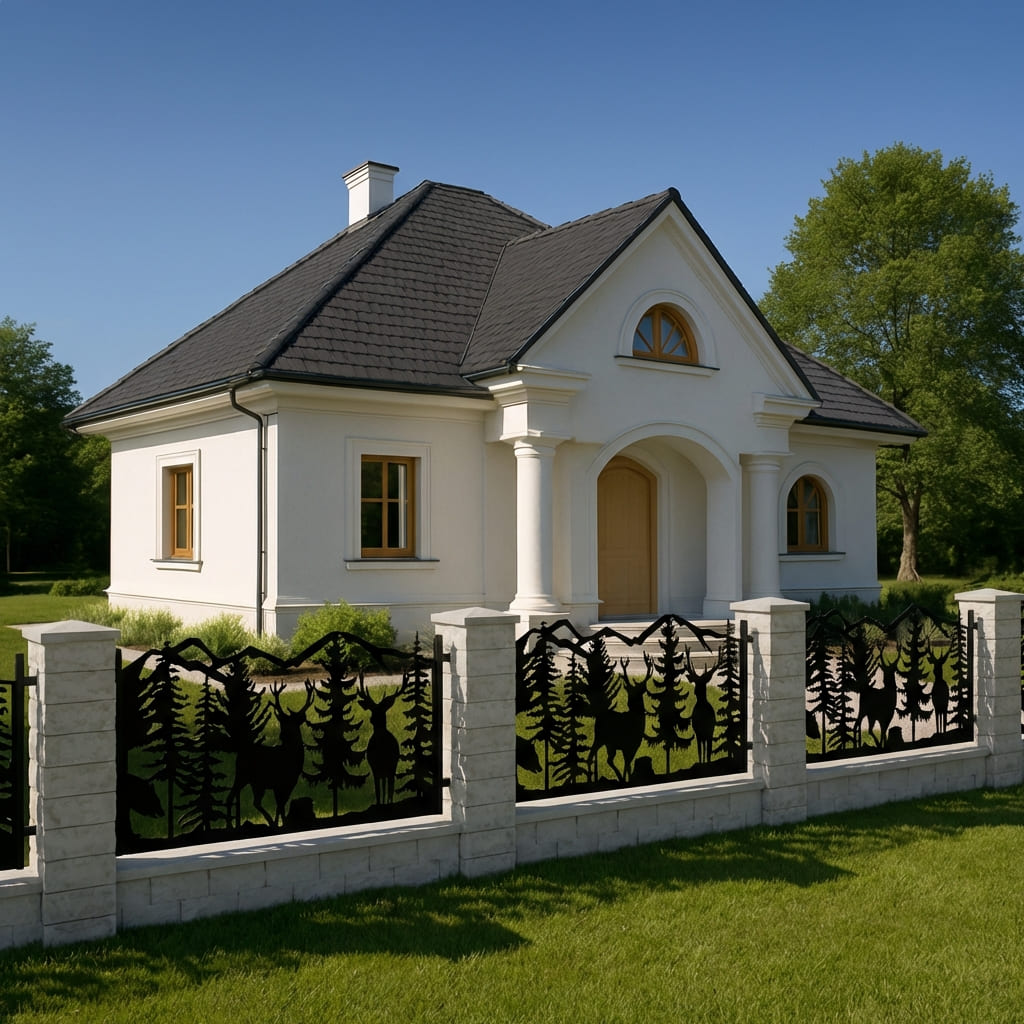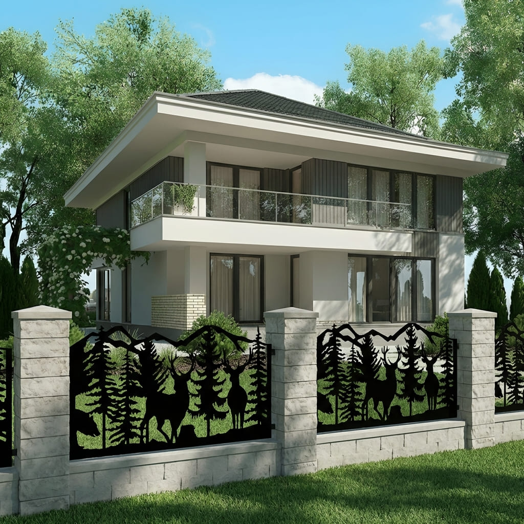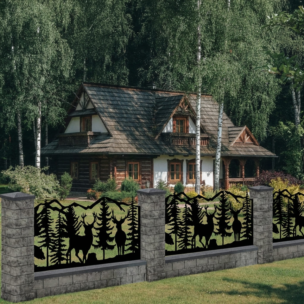 Panel Ogrodzeniowy Ażurowy Metalowy - Motyw Jelenia i Lasu - Wzór "2012" - Cięcie Laserowe na Wymiar