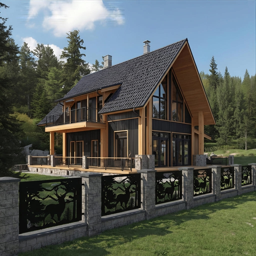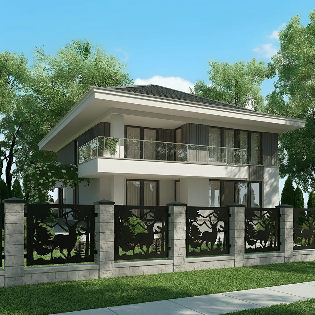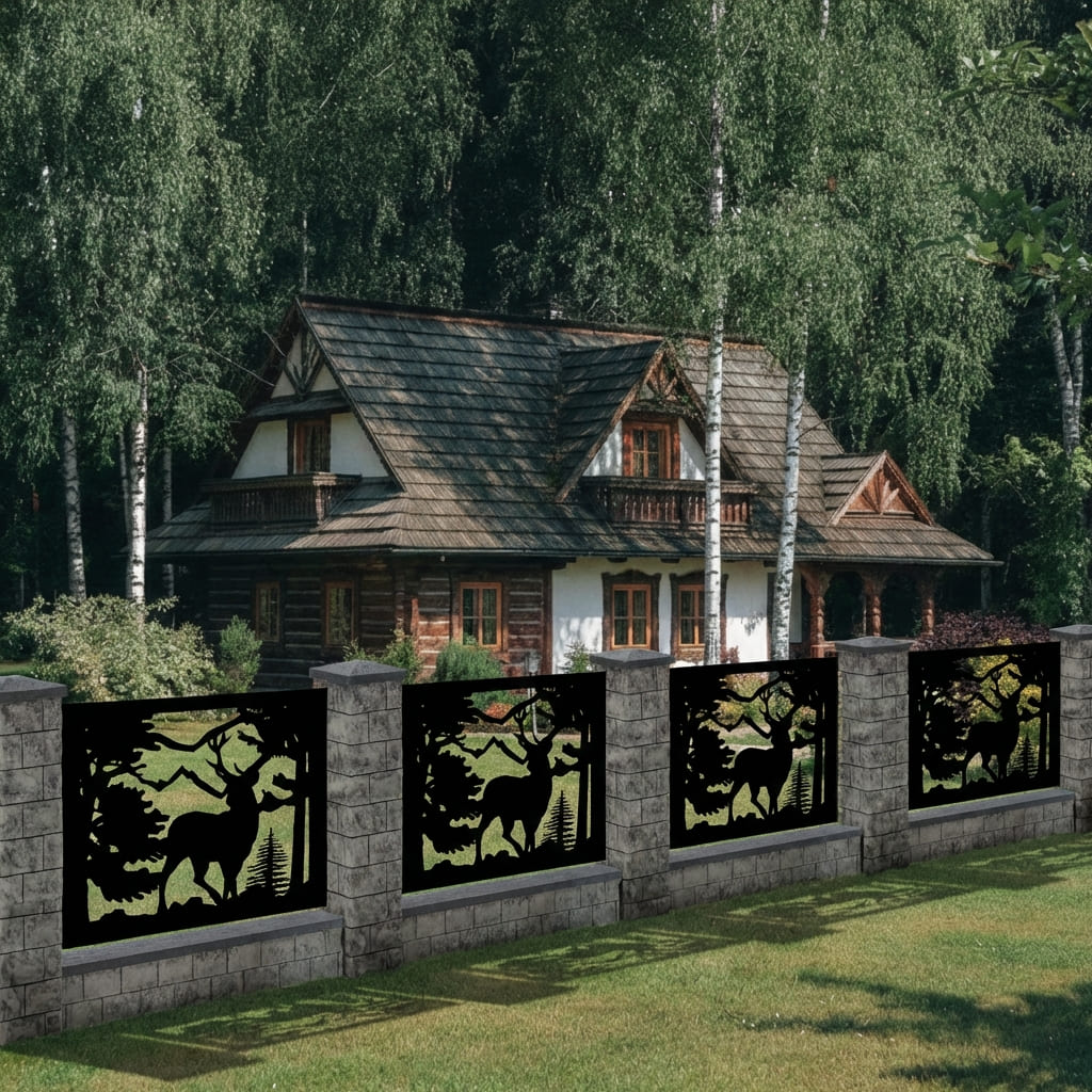 Panel Ogrodzeniowy Ażurowy Metalowy - Motyw Jelenia i Lasu - Wzór "2123" - Cięcie Laserowe na Wymiar