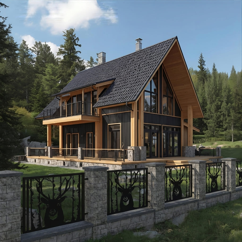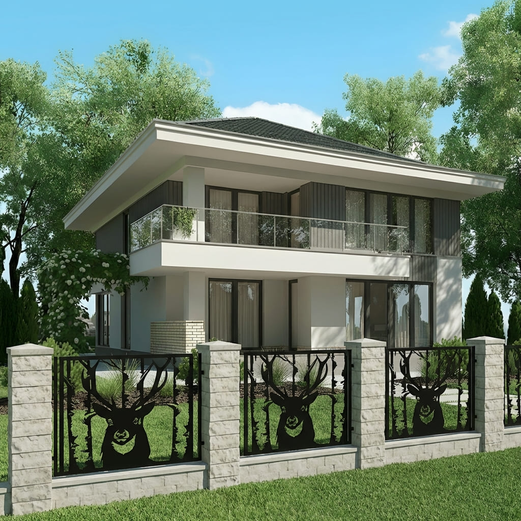 Panel Ogrodzeniowy Ażurowy Metalowy - Motyw Jelenia i Lasu - Wzór "2126" - Cięcie Laserowe na Wymiar