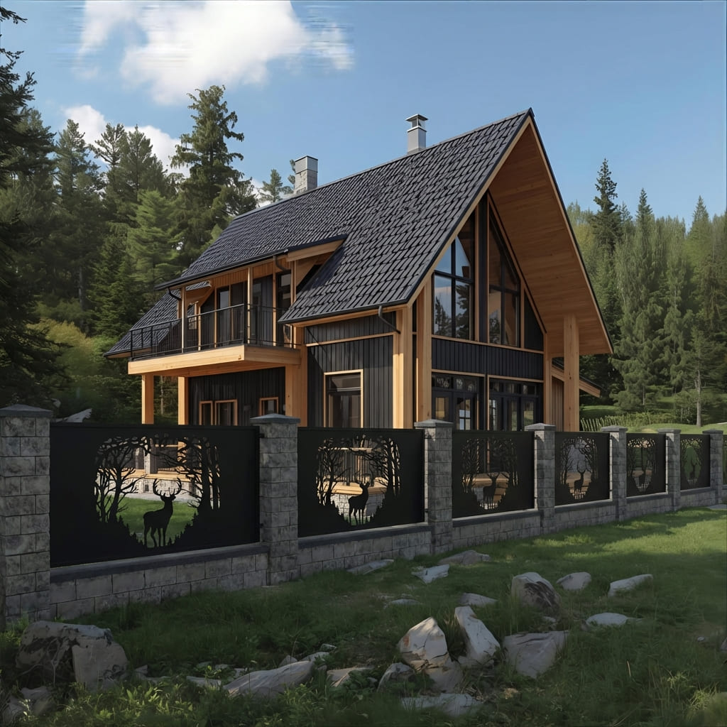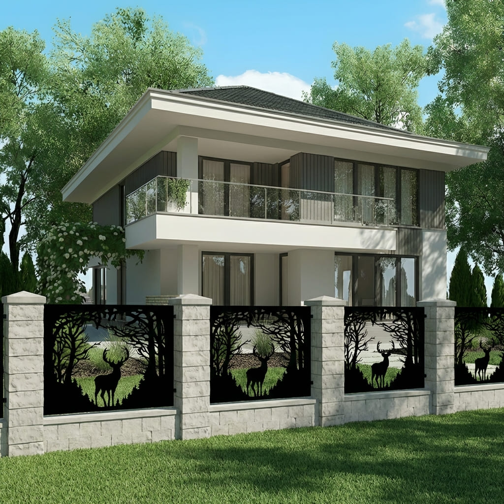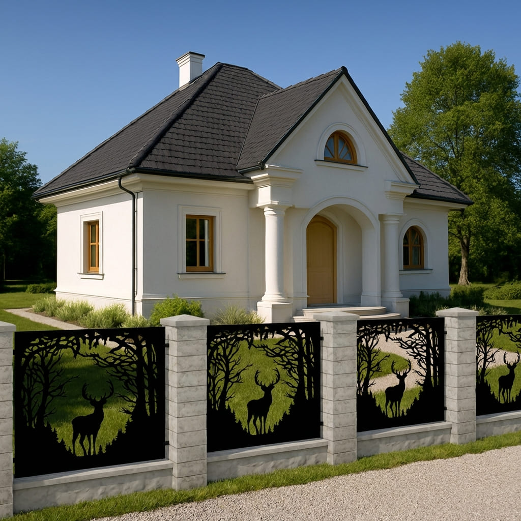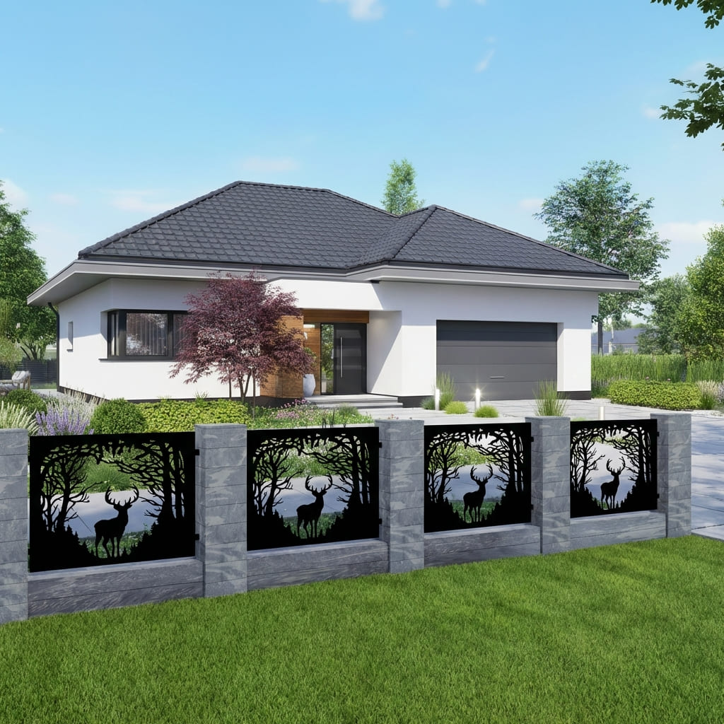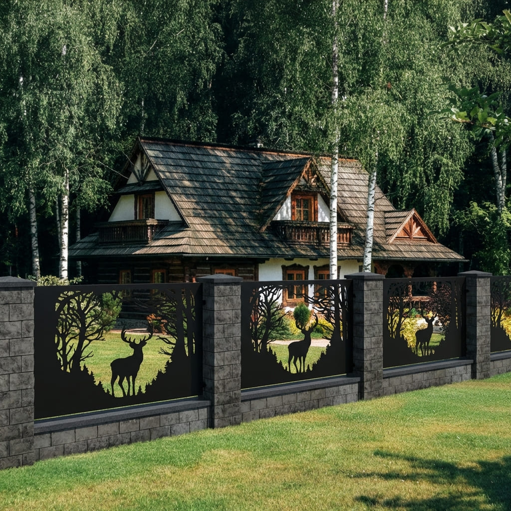 Panel Ogrodzeniowy Ażurowy Metalowy - Motyw Jelenia i Lasu - Wzór "2127" - Cięcie Laserowe na Wymiar