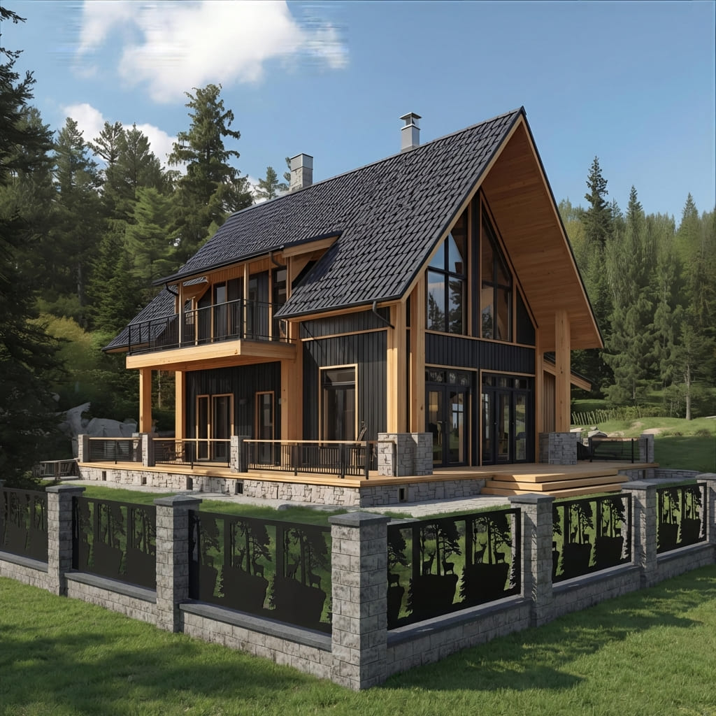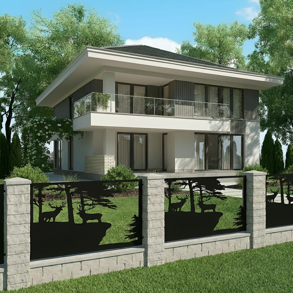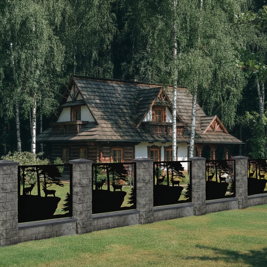 Panel Ogrodzeniowy Ażurowy Metalowy - Motyw Jelenia i Lasu - Wzór "2148" - Cięcie Laserowe na Wymiar
