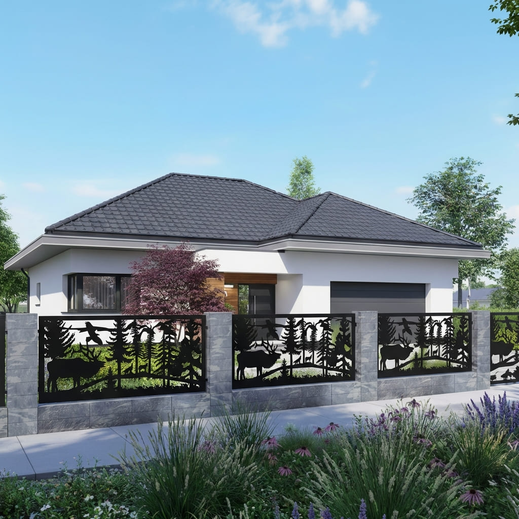 Nasze panele ogrodzeniowe z motywami zwierzęcymi wprowadzają do przestrzeni naturalną dynamikę i niepowtarzalny styl. Sylwetki zwierząt tworzą kompozycję, która przyciąga wzrok i nadaje posesji artystyczny charakter. Idealnie sprawdzają się jako przęsła, balustrady, zabudowy tarasów oraz nowoczesne obrazy ścienne – łącząc estetykę z funkcjonalnością, prywatnością oraz trwałością na lata.