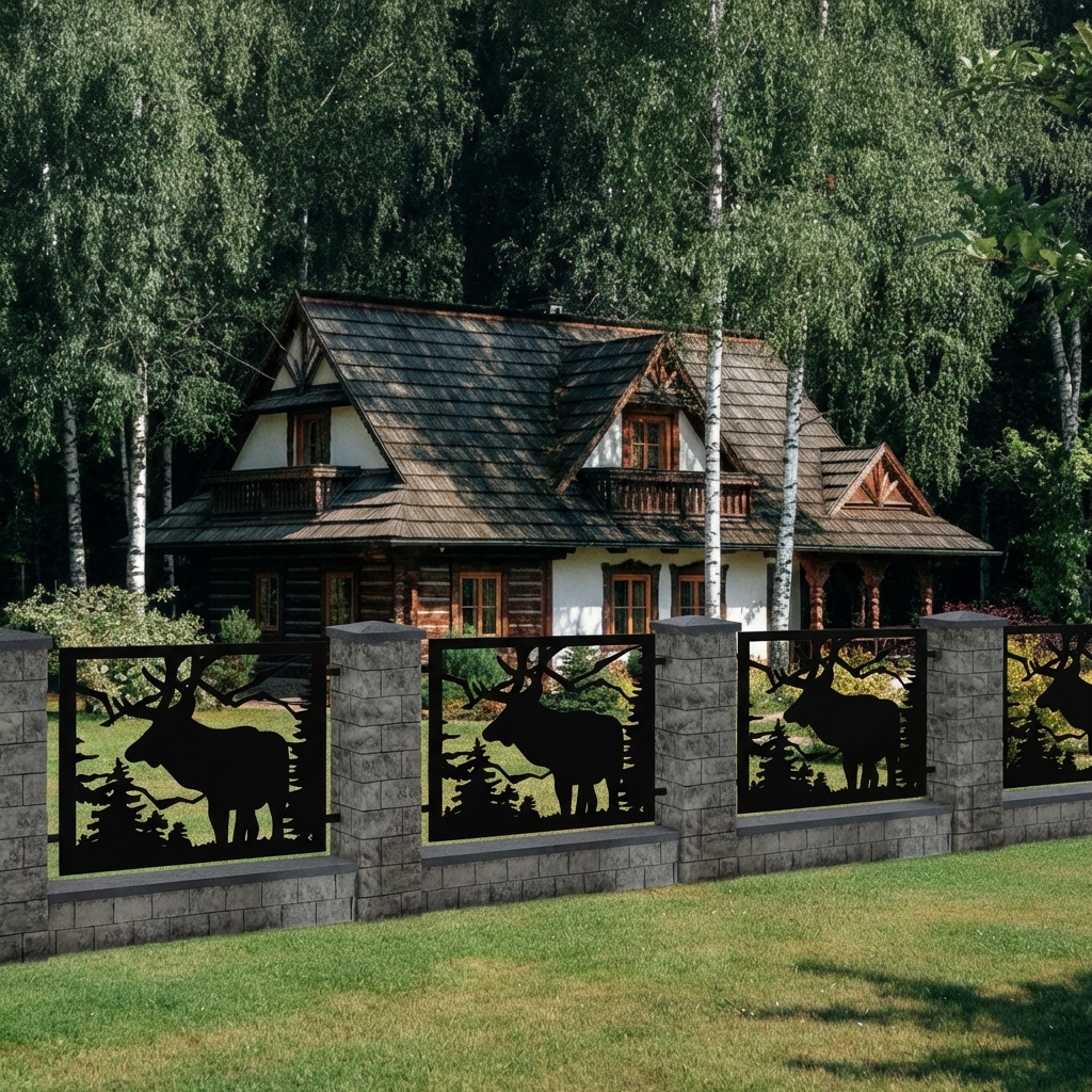 Panel Ogrodzeniowy Ażurowy Metalowy – Motyw Łoś - Wzór "2129" - Cięcie Laserowe na Wymiar