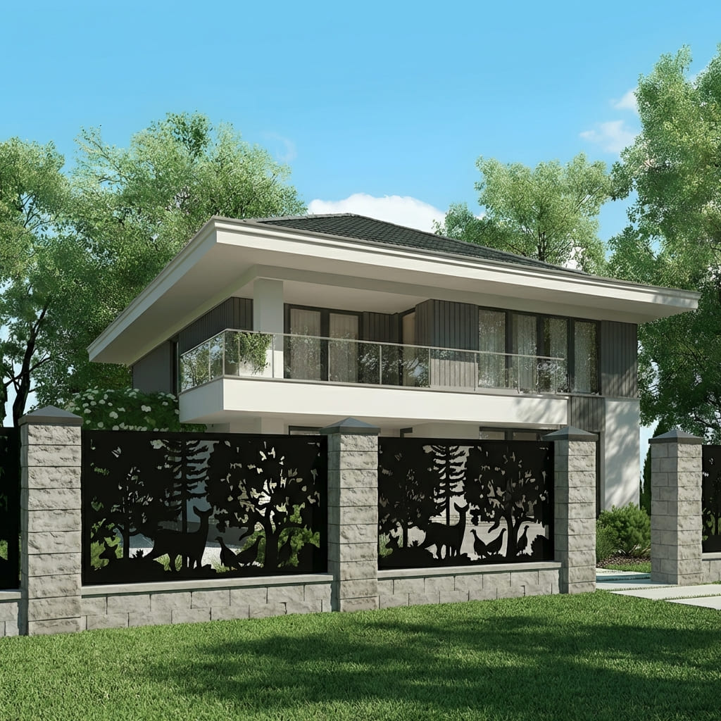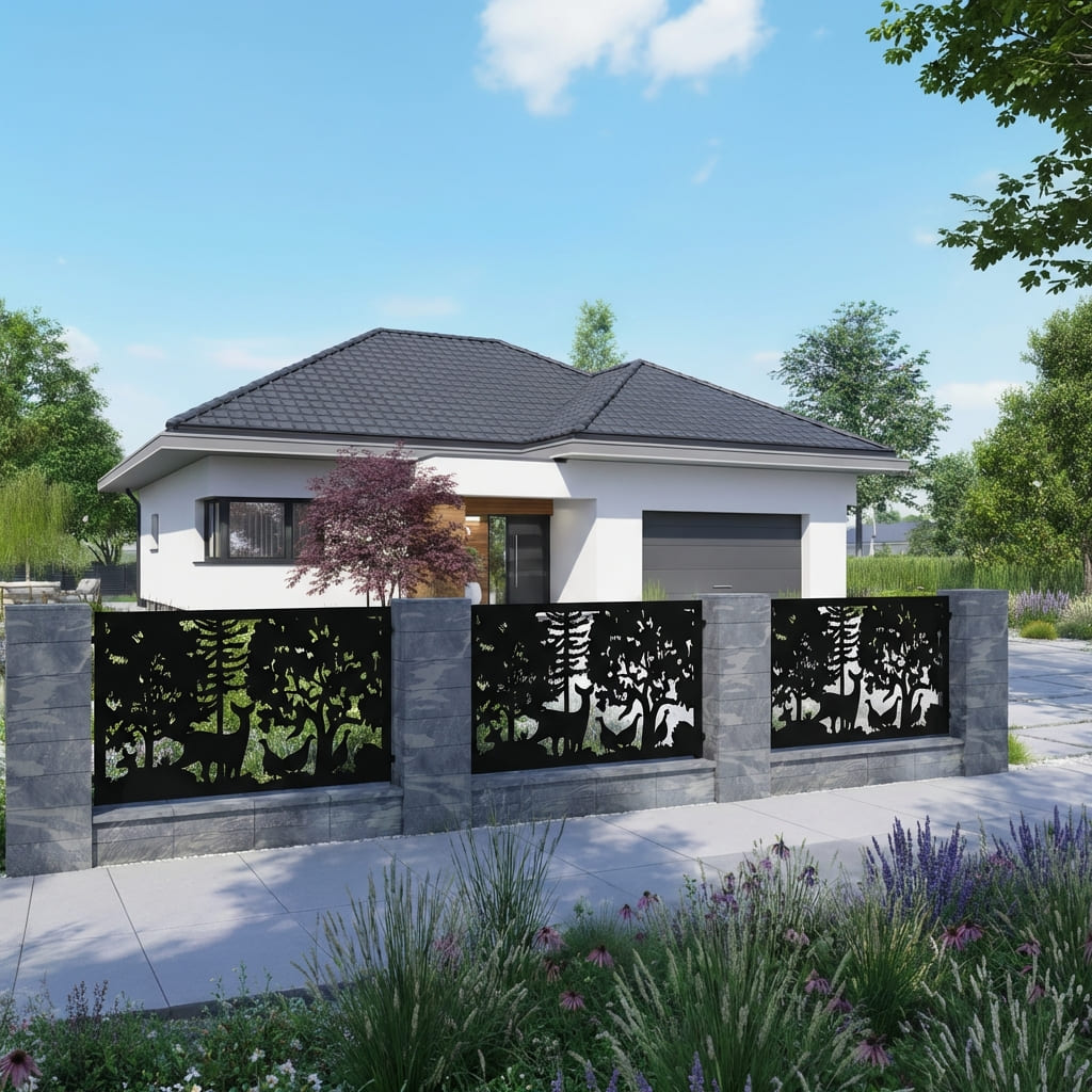 Nasze panele ogrodzeniowe z motywami zwierzęcymi wprowadzają do przestrzeni naturalną dynamikę i niepowtarzalny styl. Sylwetki zwierząt tworzą kompozycję, która przyciąga wzrok i nadaje posesji artystyczny charakter. Idealnie sprawdzają się jako przęsła, balustrady, zabudowy tarasów oraz nowoczesne obrazy ścienne – łącząc estetykę z funkcjonalnością, prywatnością oraz trwałością na lata.