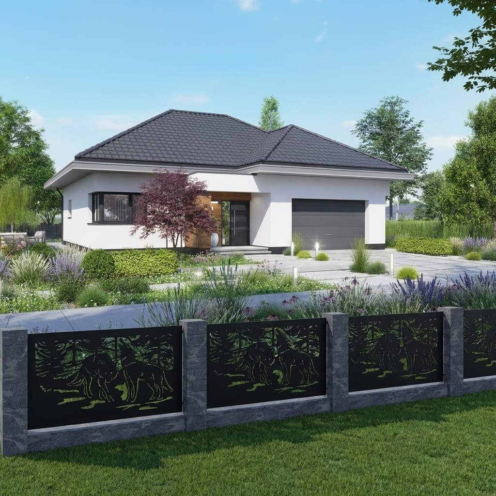 Nasze panele ogrodzeniowe z motywami zwierzęcymi wprowadzają do przestrzeni naturalną dynamikę i niepowtarzalny styl. Sylwetki zwierząt tworzą kompozycję, która przyciąga wzrok i nadaje posesji artystyczny charakter. Idealnie sprawdzają się jako przęsła, balustrady, zabudowy tarasów oraz nowoczesne obrazy ścienne – łącząc estetykę z funkcjonalnością, prywatnością oraz trwałością na lata.